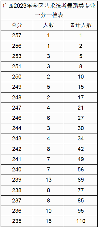 原文標(biāo)題:廣西2023年全區(qū)藝術(shù)統(tǒng)考舞蹈類專業(yè)一分一檔表