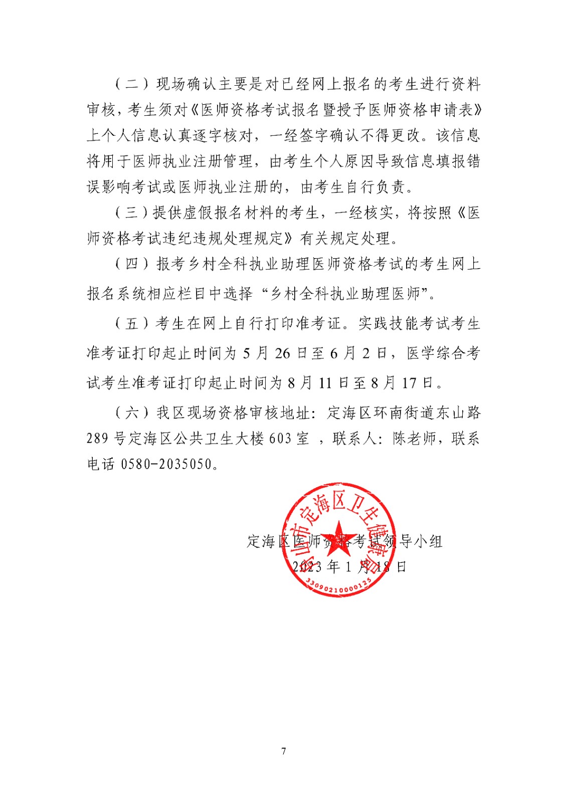 2023年浙江舟山市定海區(qū)醫(yī)師資格考試現(xiàn)場確認(rèn)時(shí)間通知