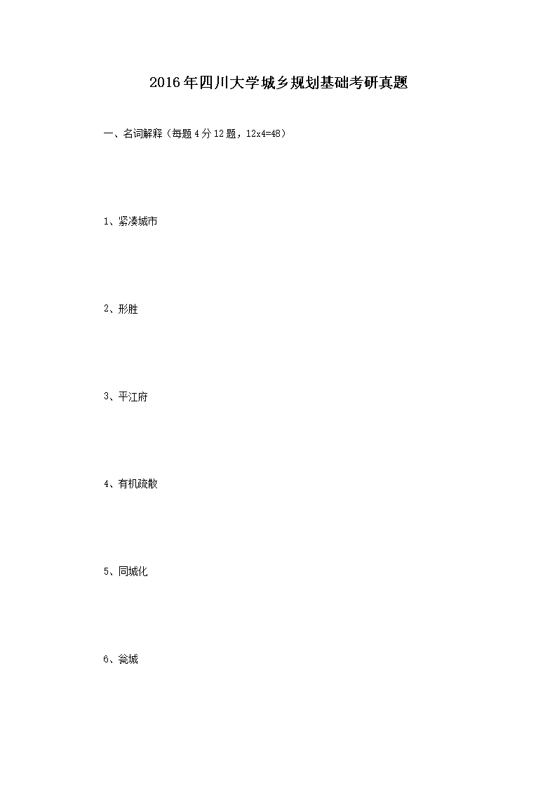 【文檔名稱】 2016年四川大學(xué)城鄉(xiāng)規(guī)劃基礎(chǔ)考研真題(Word版).doc