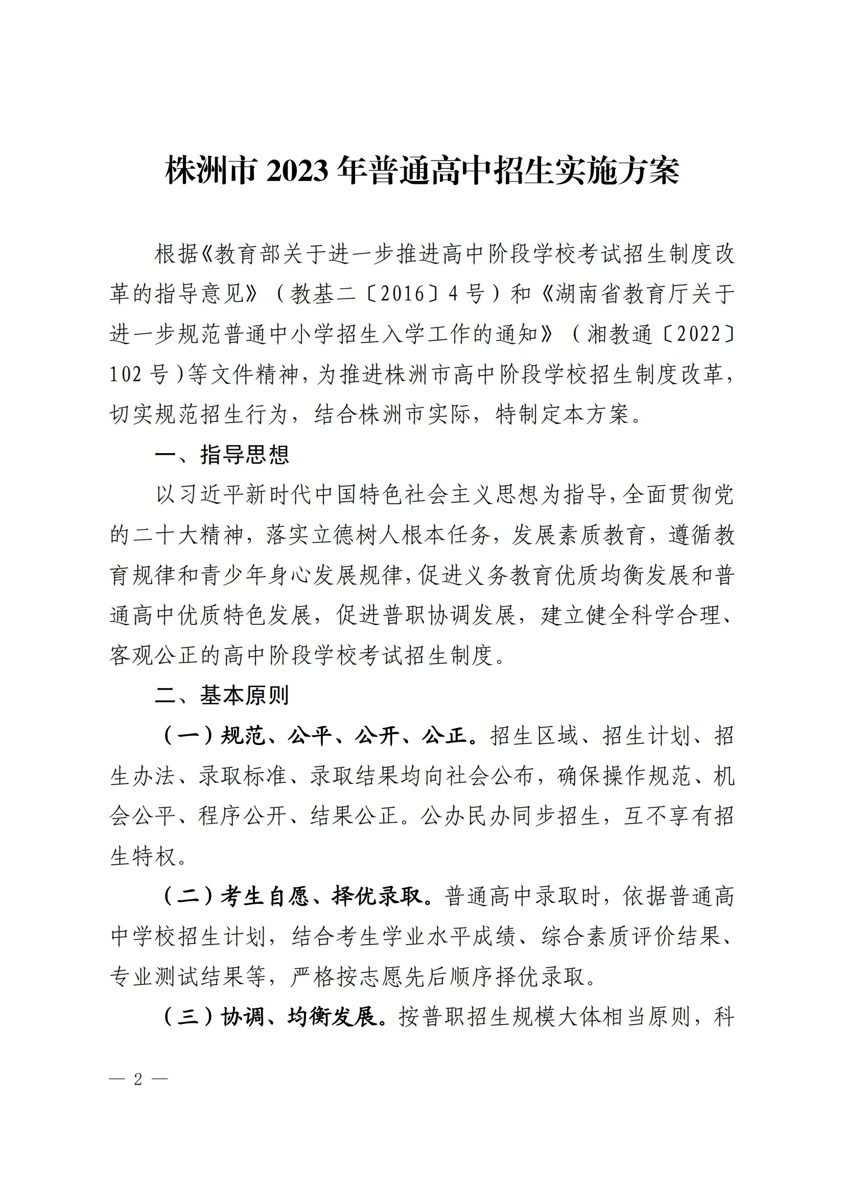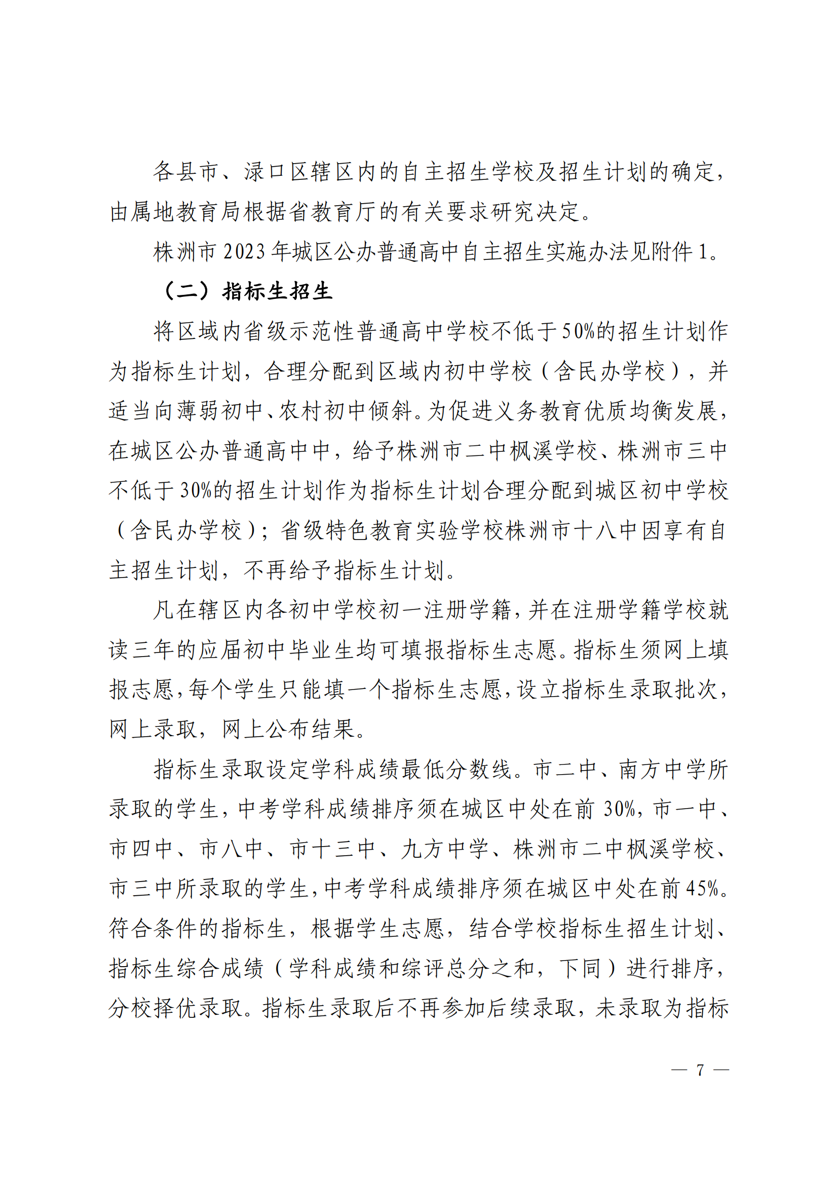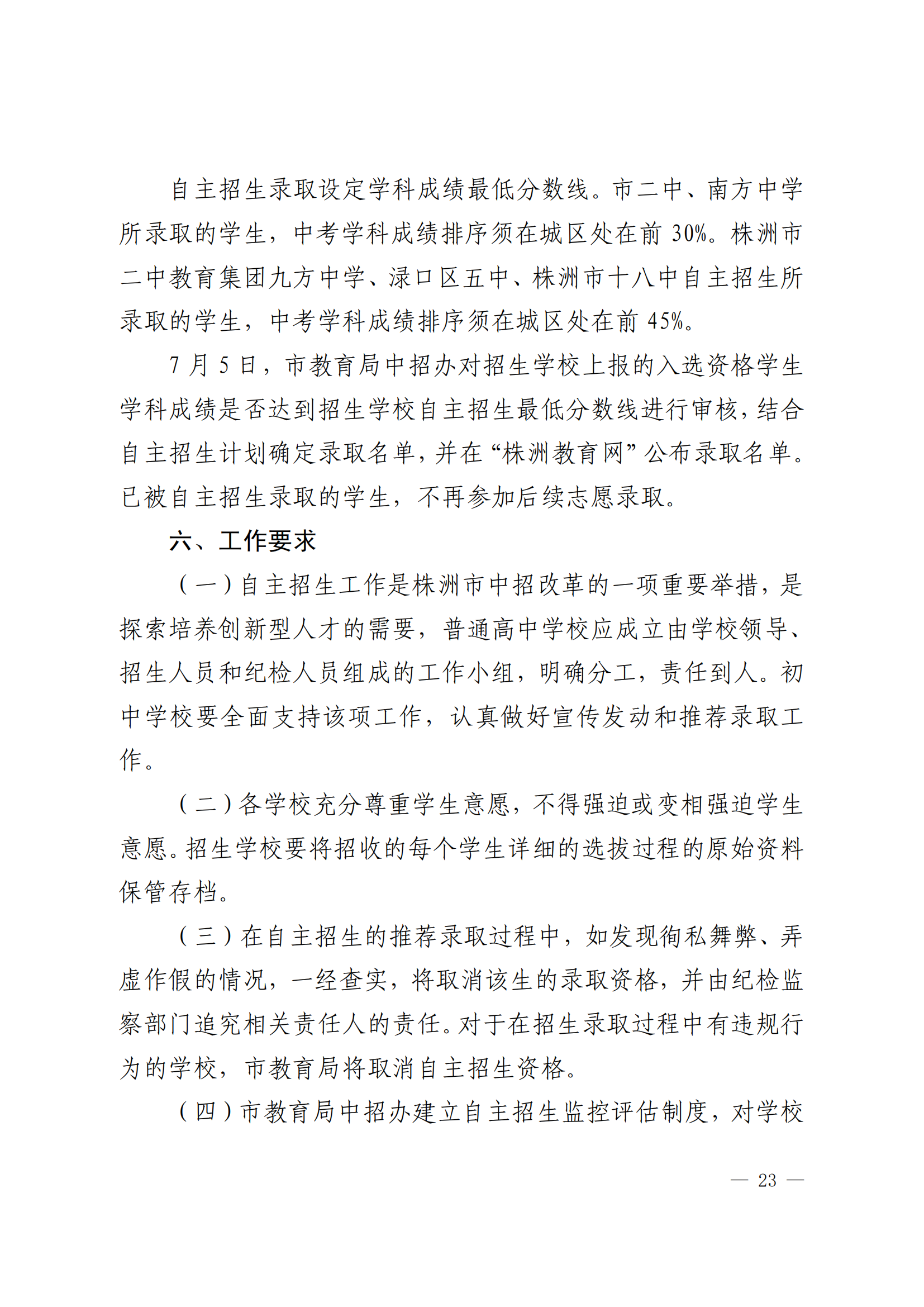 附件:株洲市2023年普通高中招生實施方案