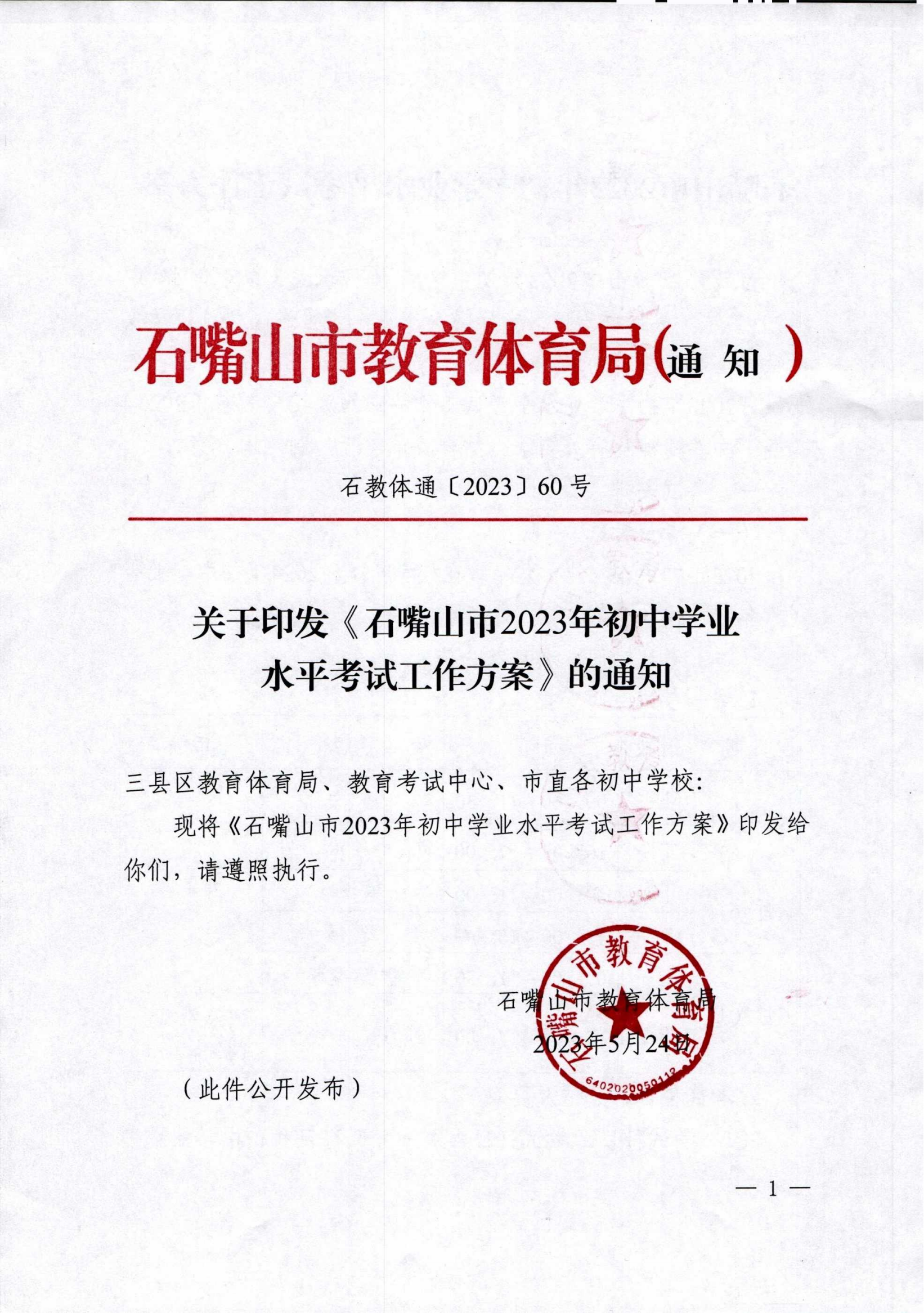原文標(biāo)題:關(guān)于印發(fā)《石嘴山市2023年初中學(xué)業(yè)水平考試工作方案》的通知