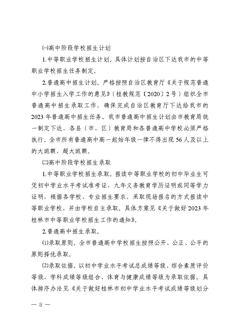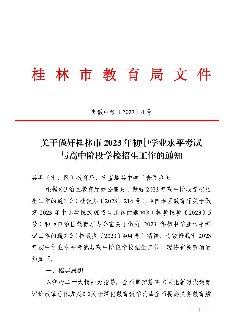 原文標(biāo)題:關(guān)于做好桂林市2023年初中學(xué)業(yè)水平考試與高中階段學(xué)校招生工作的通知