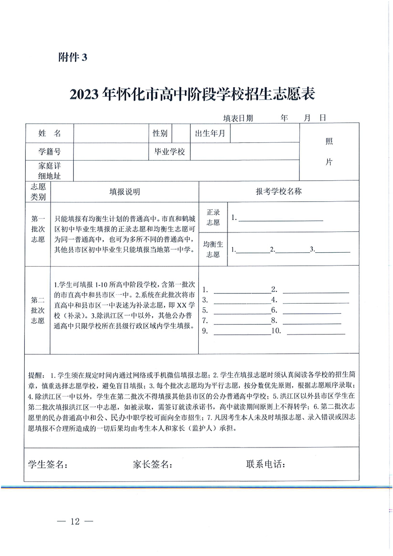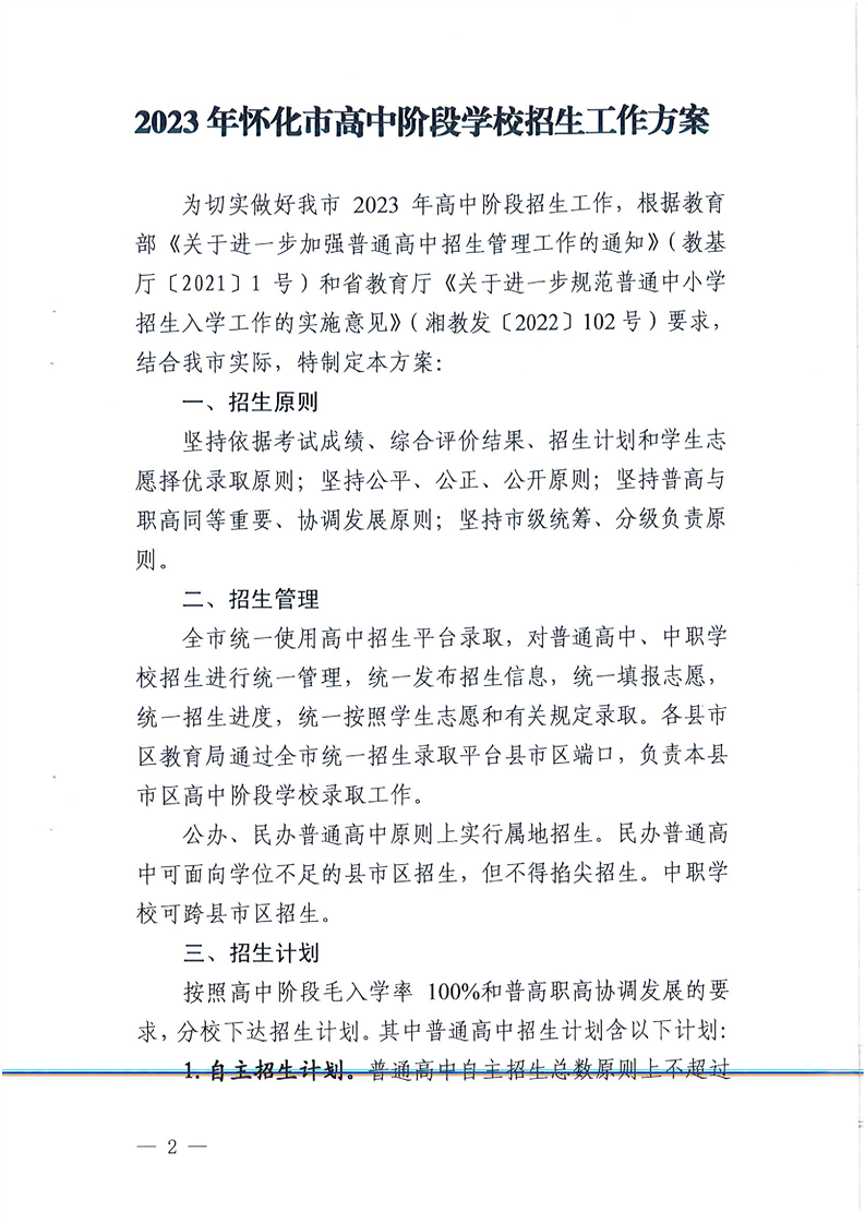 原文標(biāo)題:關(guān)于印發(fā)《2023年懷化市高中階段學(xué)校招生工作方案》的通知