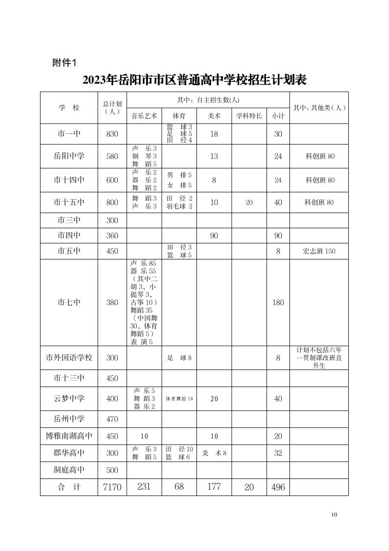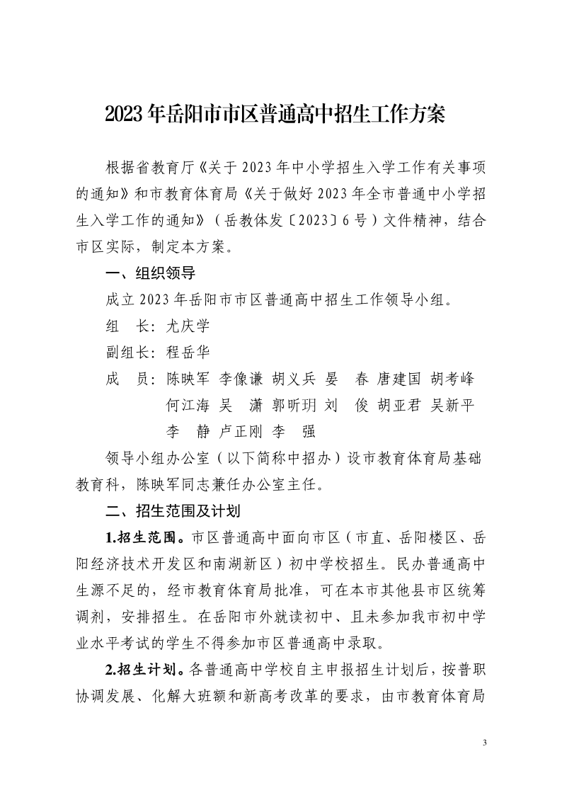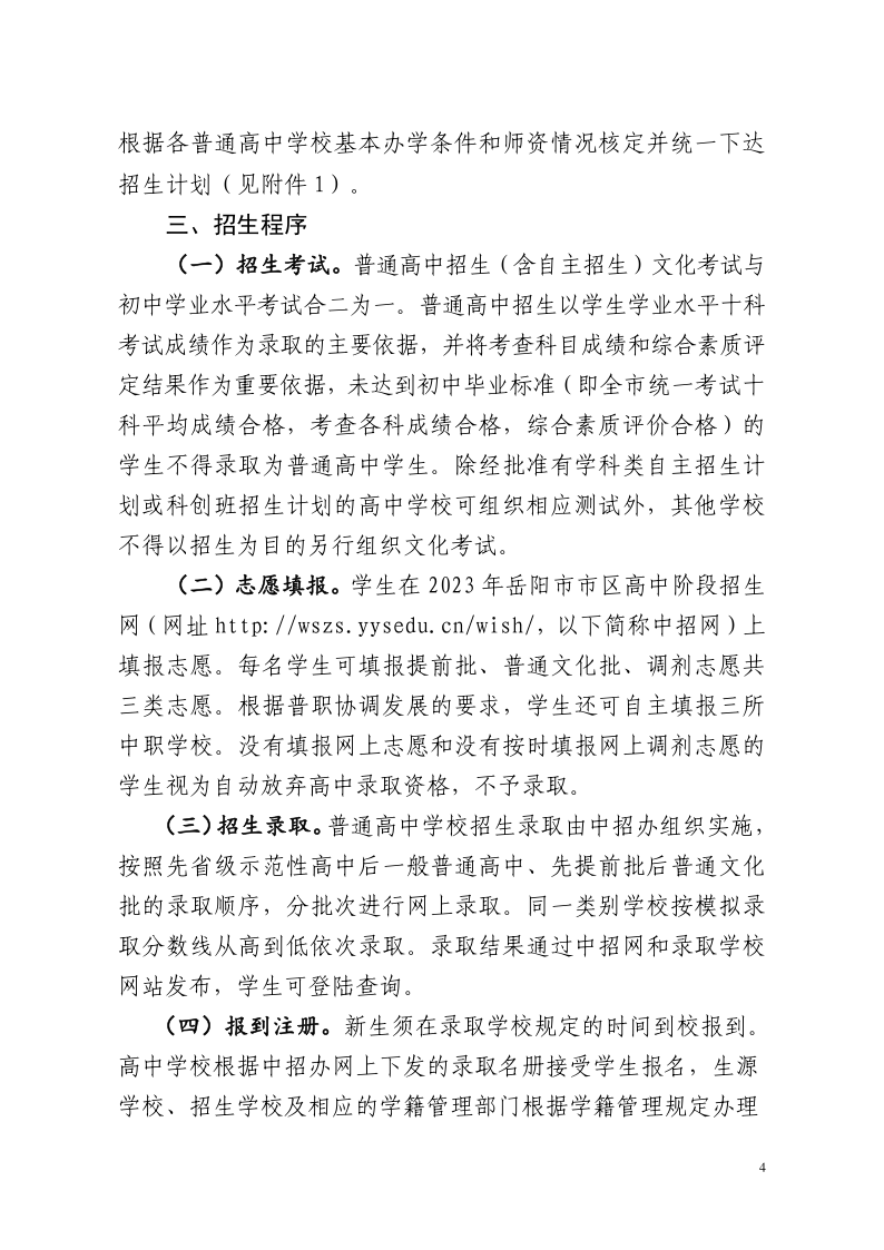 2023年湖南岳陽市市區(qū)普通高中招生工作方案