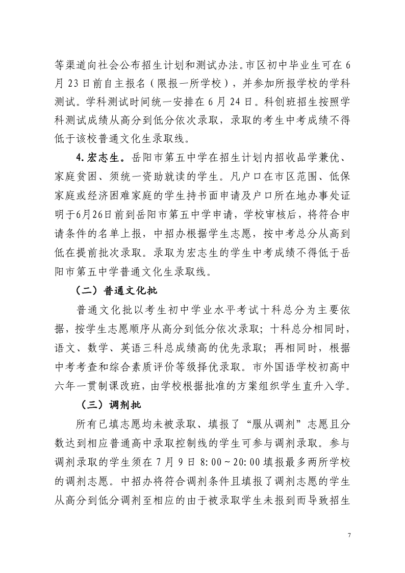 2023年湖南岳陽市市區(qū)普通高中招生工作.docx