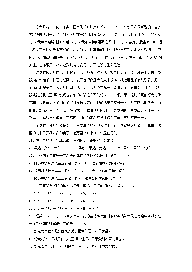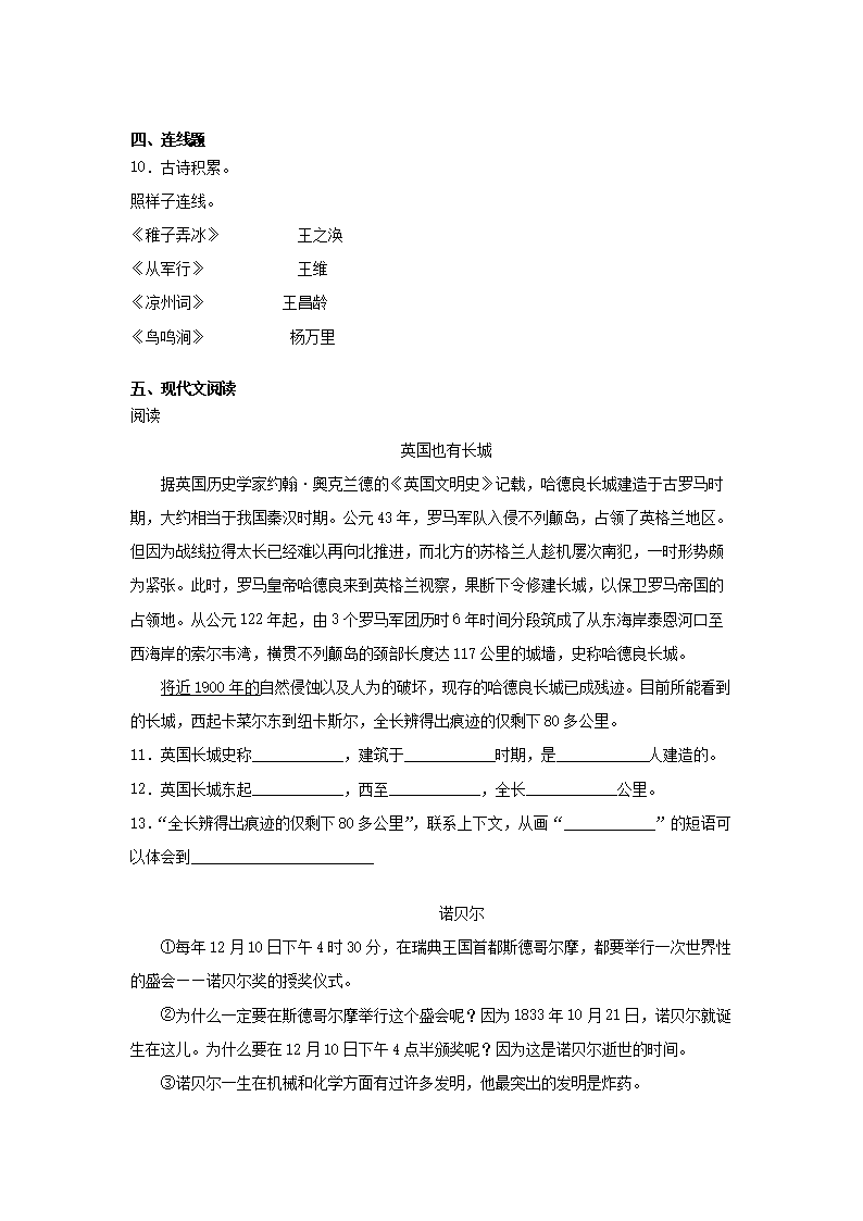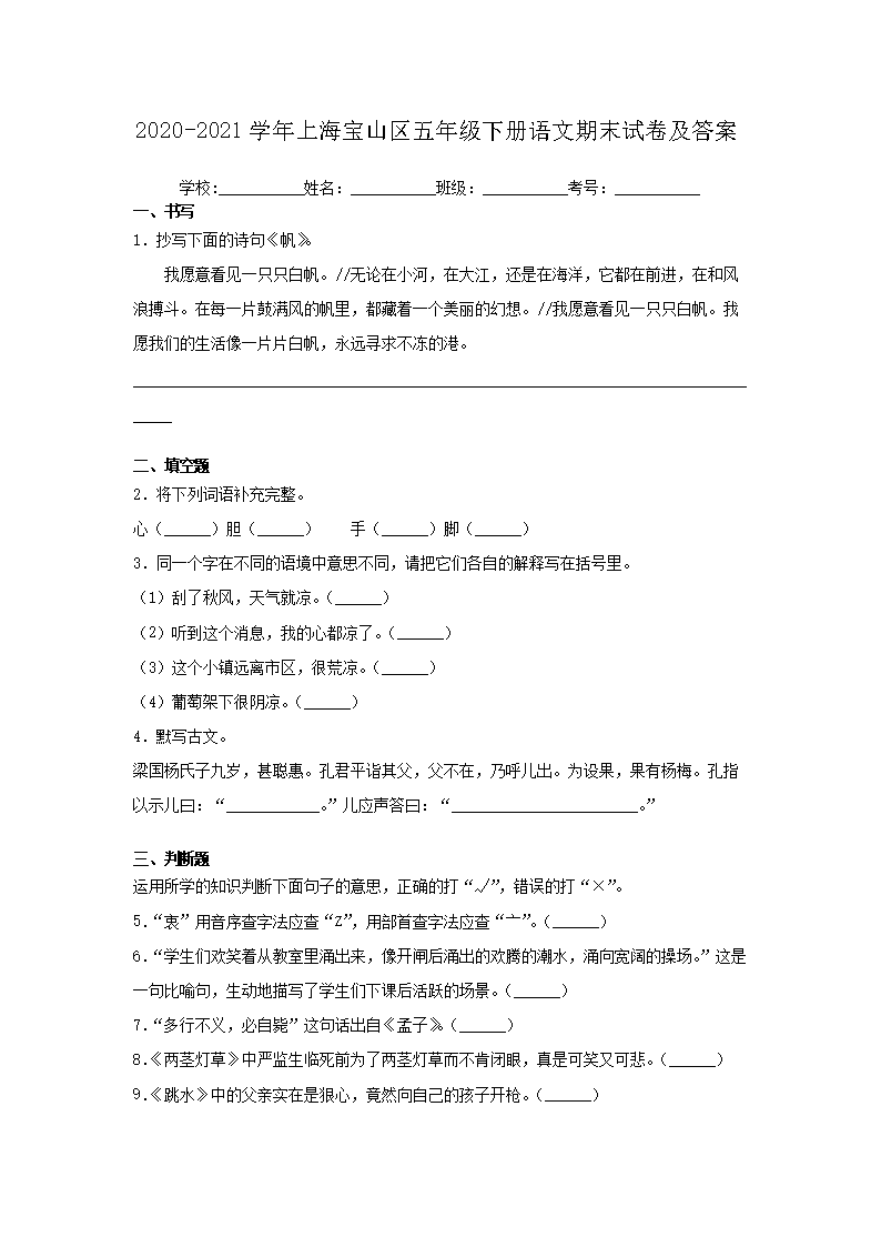 【文檔預覽】 無憂考網整理發(fā)布2020-2021學年上海寶山區(qū)五年級下冊語文期末試卷及答案(Word版),前五頁預覽如下: