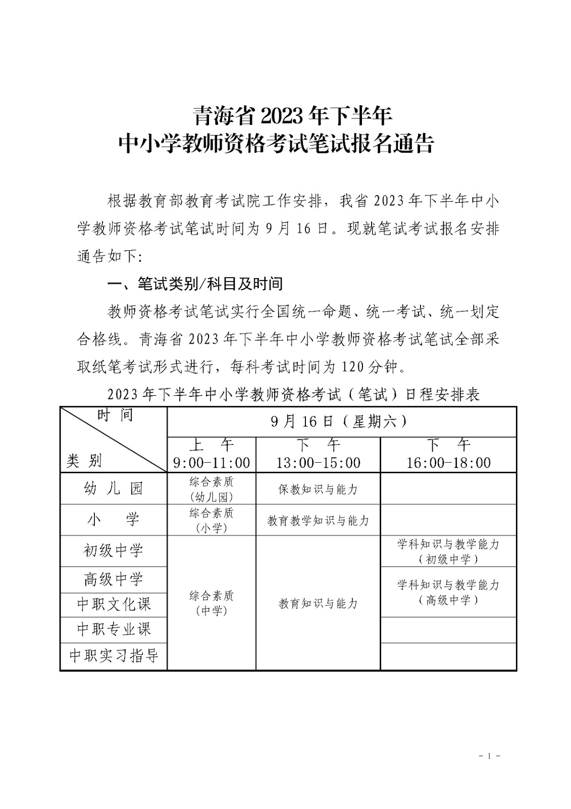 - 2025下半年青海中小學(xué)教師資格筆試考試時間、科目及方式(9月13日)
