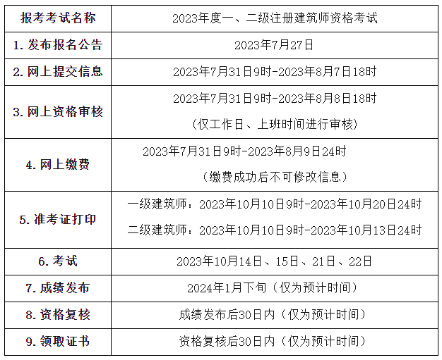 根據(jù)《人力資源社會保障部辦公廳關于2023年度專業(yè)技術人員職業(yè)資格考試計劃及有關事項的通知》(人社廳發(fā)〔2023〕3號)要求,2023年度一級注冊建筑師資格考試于10月14日、15日、21日、22日舉行,二級注冊建筑師資格考試于10月14日、15日舉行。現(xiàn)將有關事項通知如下: