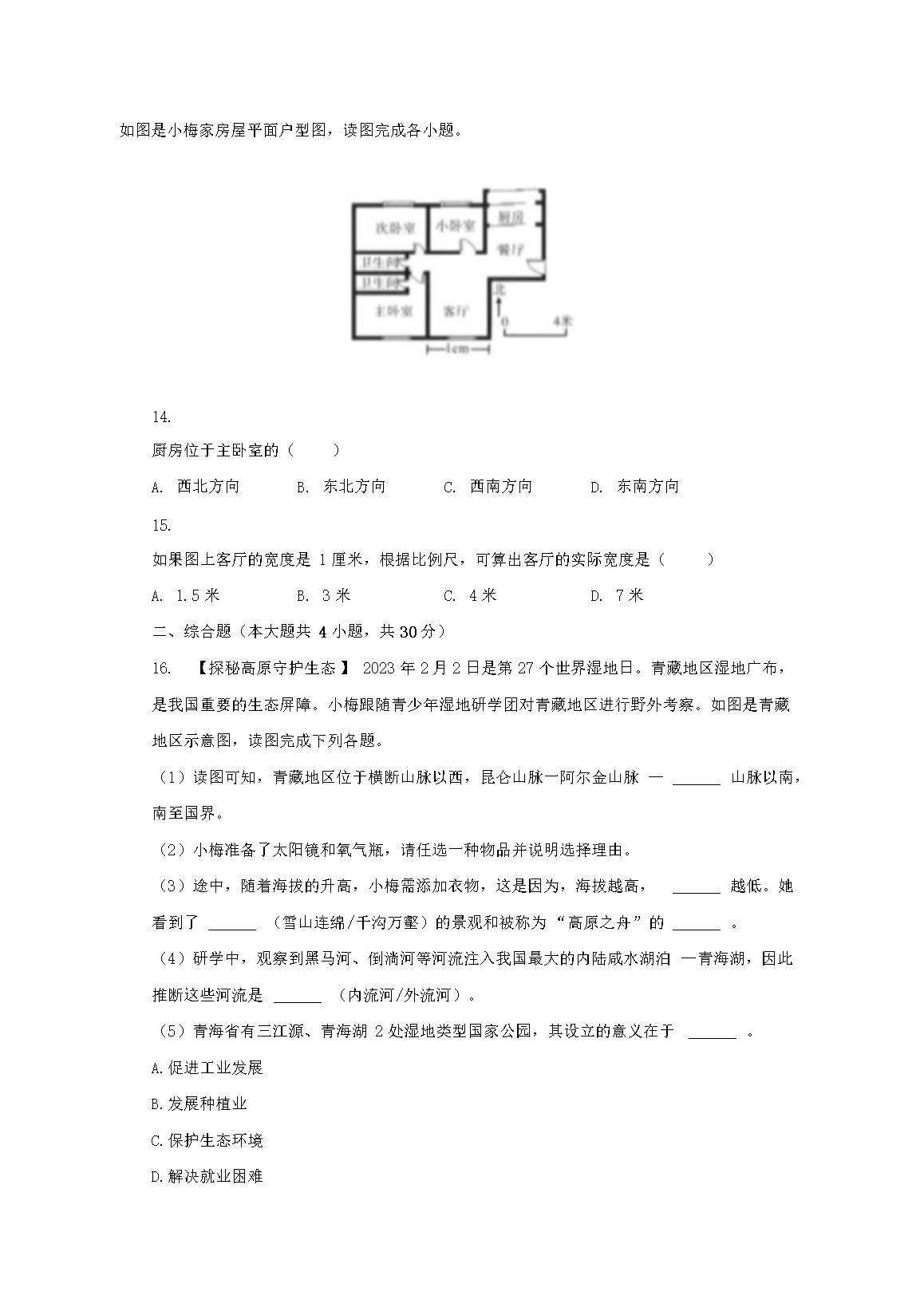 【文檔名稱】 2023年青海黃南中考地理真題及答案(Word版).doc