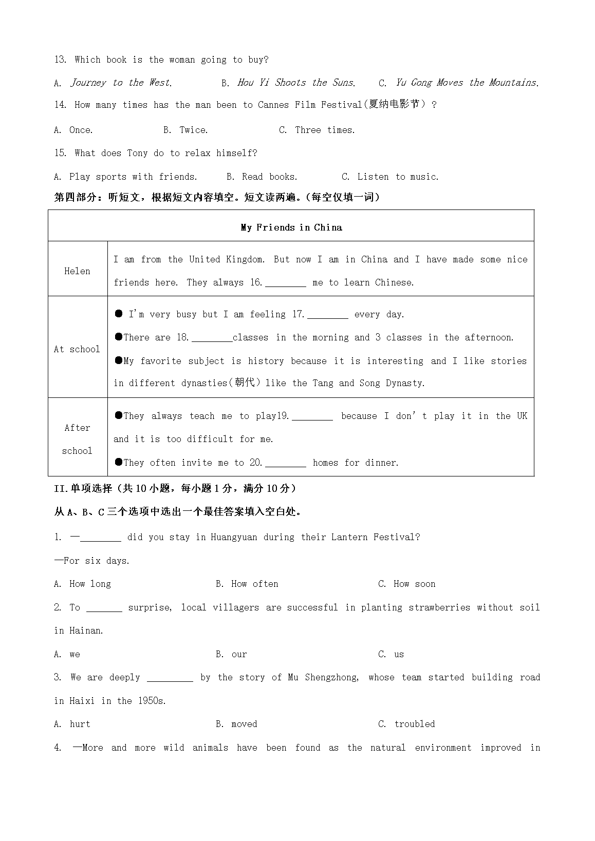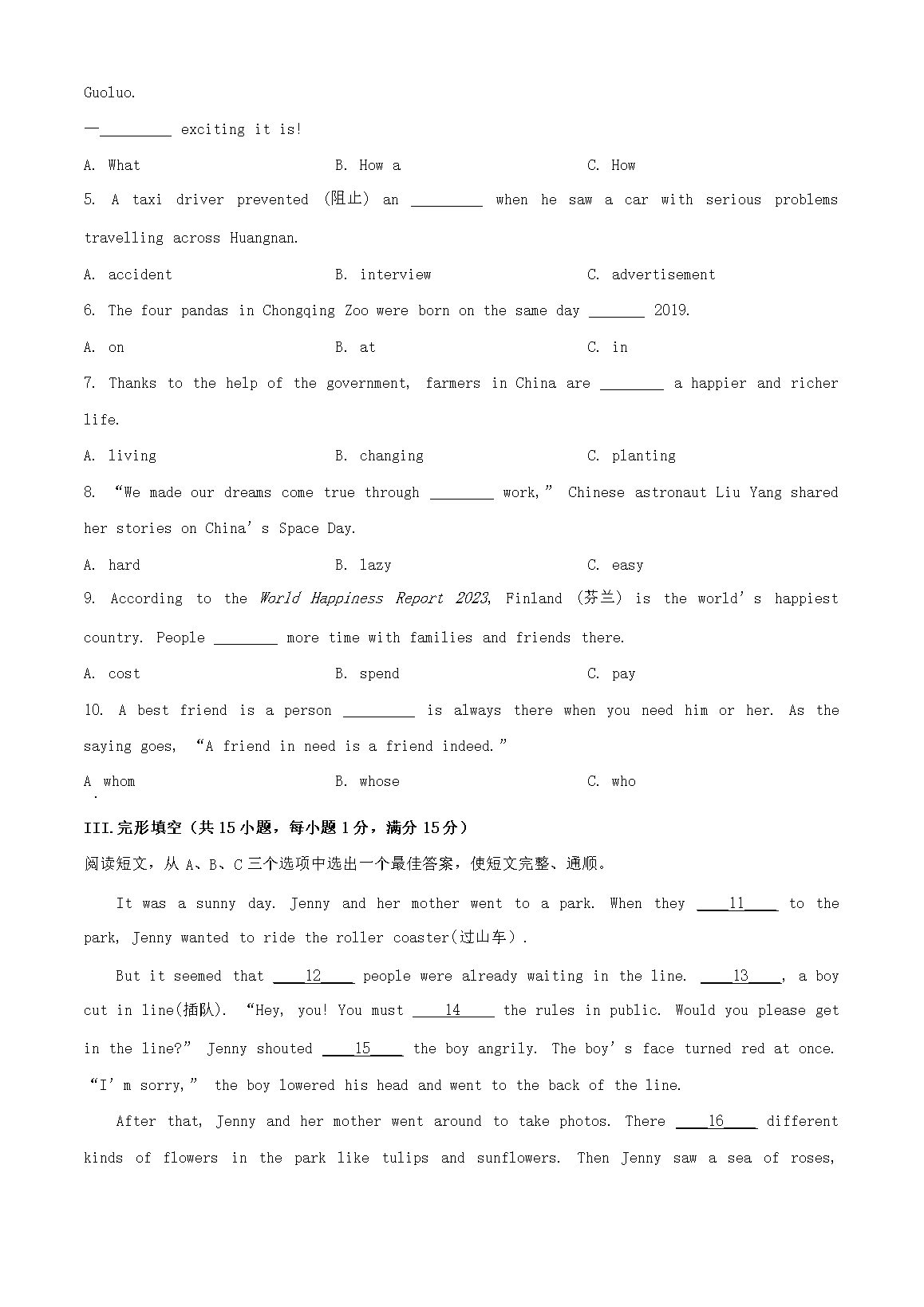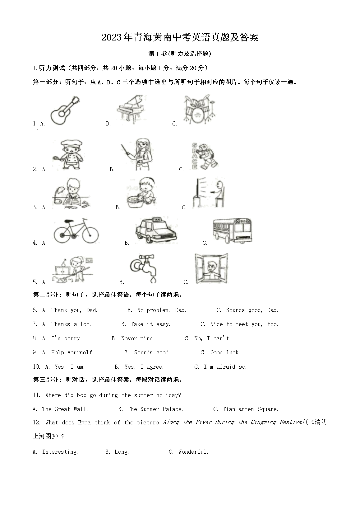 【文檔名稱】 2023年青海黃南中考英語真題及答案(Word版).doc