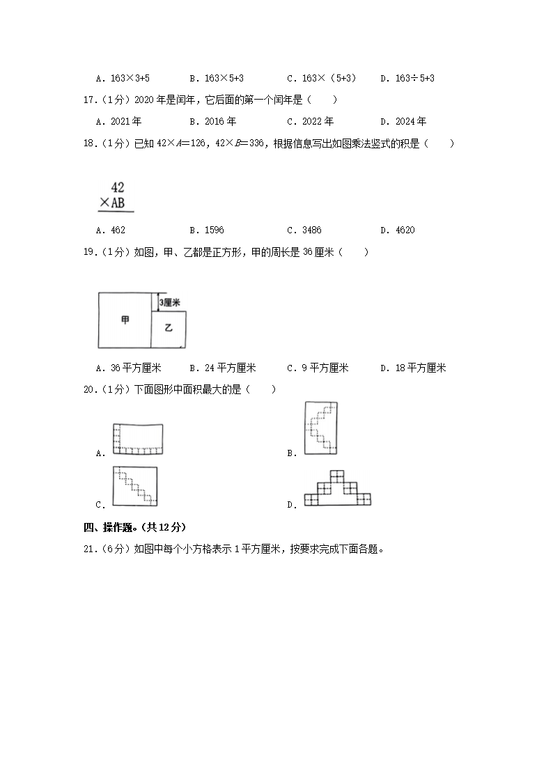 - 2020-2021學(xué)年天津市紅橋區(qū)小學(xué)三年級(jí)上冊(cè)數(shù)學(xué)期末試題及答案