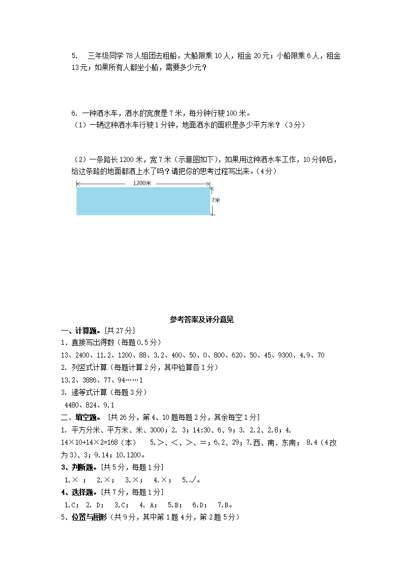 - 2019-2020學(xué)年天津市部分區(qū)小學(xué)三年級(jí)上冊(cè)數(shù)學(xué)期末試題及答案