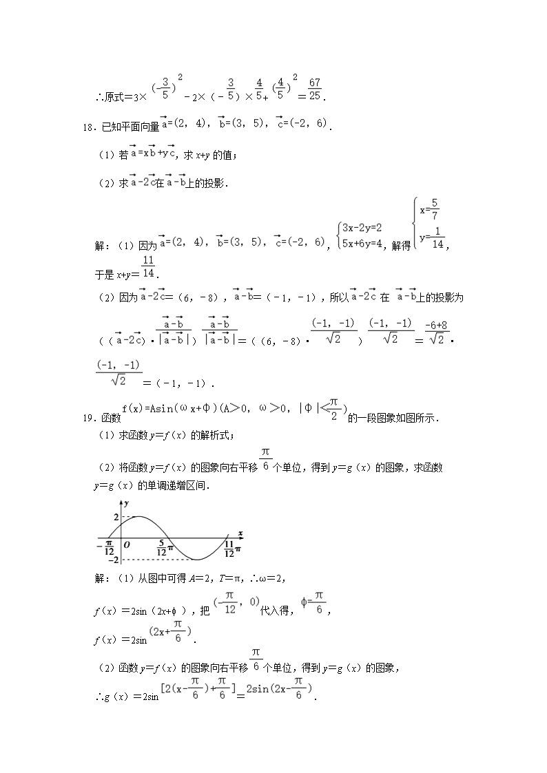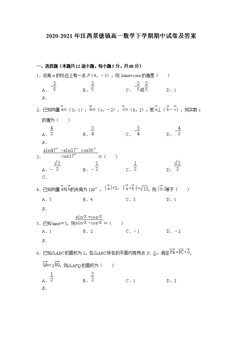 【文檔名稱】 2020-2021年江西景德鎮(zhèn)高一數(shù)學下學期期中試卷及答案(Word版).doc