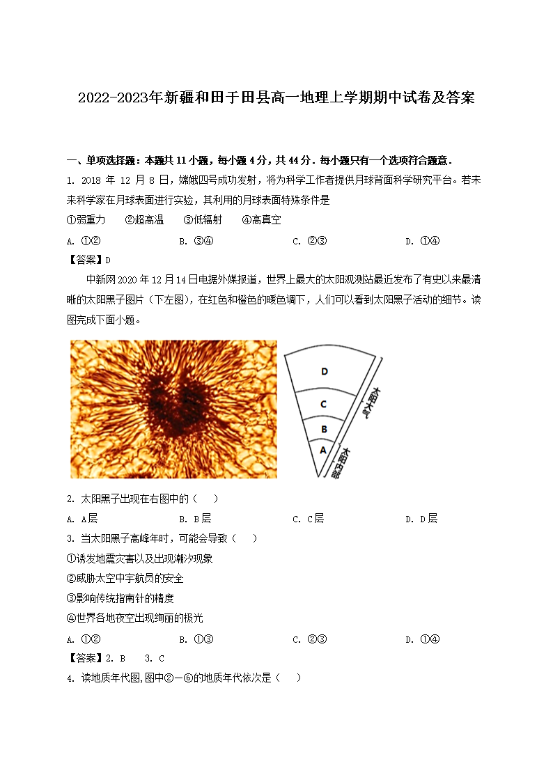 【文檔預(yù)覽】 無(wú)憂考網(wǎng)整理發(fā)布2022-2023年新疆和田于田縣高一地理上學(xué)期期中試卷及答案(Word版),前五頁(yè)預(yù)覽如下: