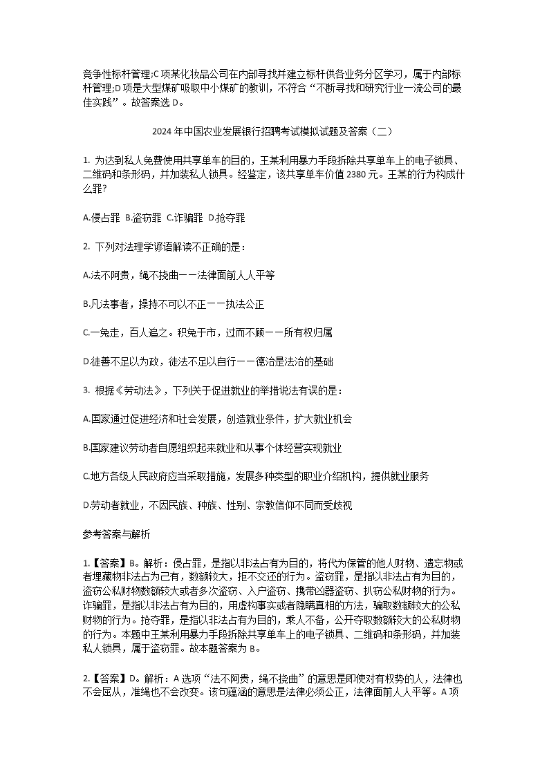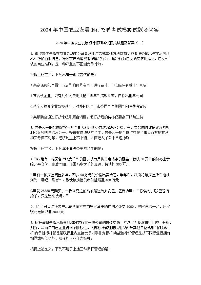 【文檔預(yù)覽】 無(wú)憂考網(wǎng)整理發(fā)布2024年中國(guó)農(nóng)業(yè)發(fā)展銀行招聘考試模擬試題及答案(Word版),前五頁(yè)預(yù)覽如下: