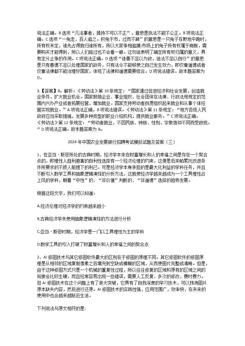 2024年中國(guó)農(nóng)業(yè)發(fā)展銀行招聘考試模擬試題及答案(Word版)