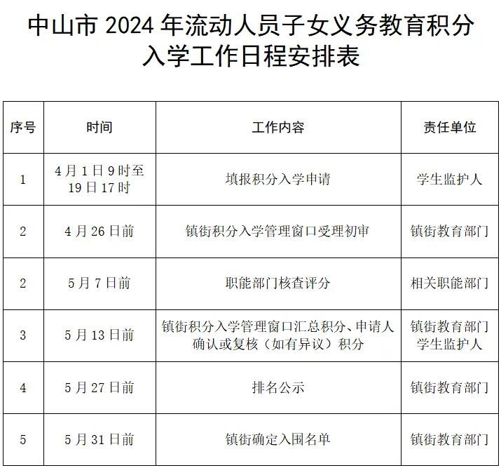 廣東中山翠亨新區(qū)(南朗街道)2024年流動(dòng)人員子女積分入學(xué)工作指引