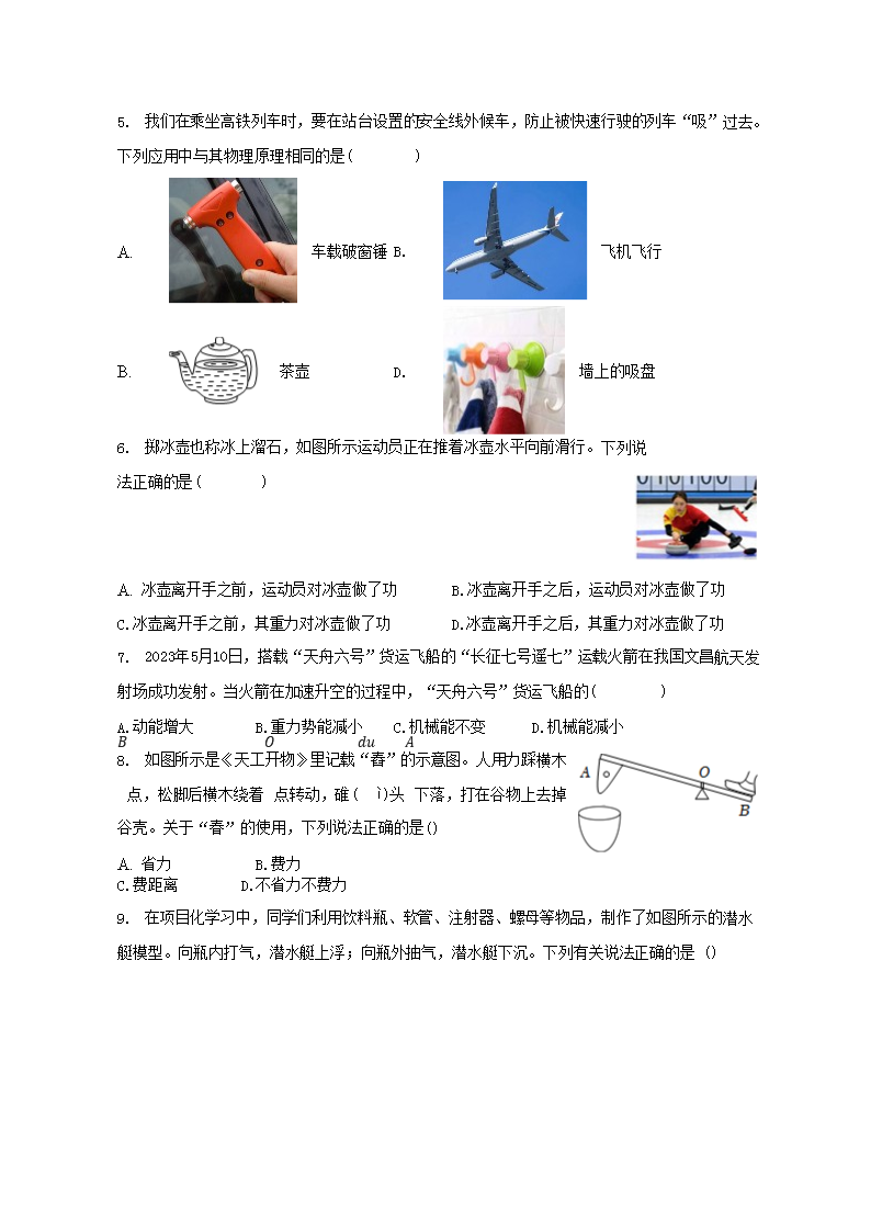 時(shí)間:2024-05-13 17:20:00 來(lái)源:無(wú)憂(yōu)考網(wǎng) [字體:小 中 大]【文檔名稱(chēng)】 2022-2023學(xué)年山西省晉中市八年級(jí)下學(xué)期期末物理試題及答案(Word版).doc