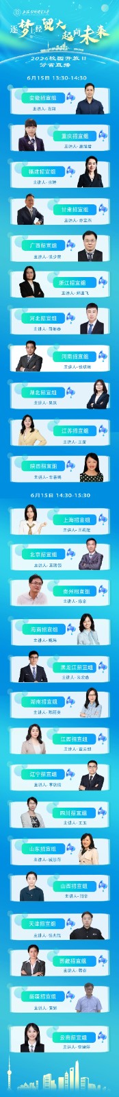分省招生咨詢(xún)直播生源省份同時(shí)開(kāi)播,各省招宣組老師齊上陣,精準(zhǔn)介紹本省招生政策,期待與同學(xué)們?cè)贫讼嘁?jiàn)!更有在線互動(dòng)環(huán)節(jié)解答你的疑問(wèn)助你報(bào)考無(wú)憂(yōu)!