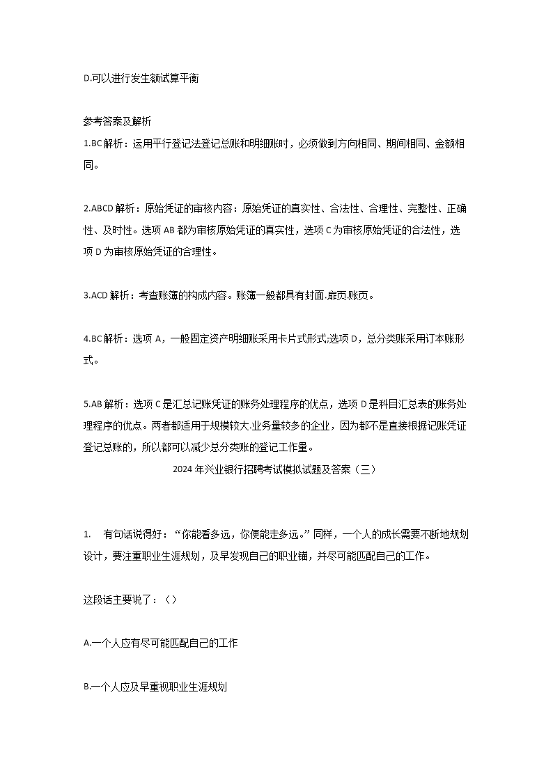 【文檔預(yù)覽】 無憂考網(wǎng)整理發(fā)布2024年興業(yè)銀行招聘考試模擬試題及答案(Word版),前五頁預(yù)覽如下:
