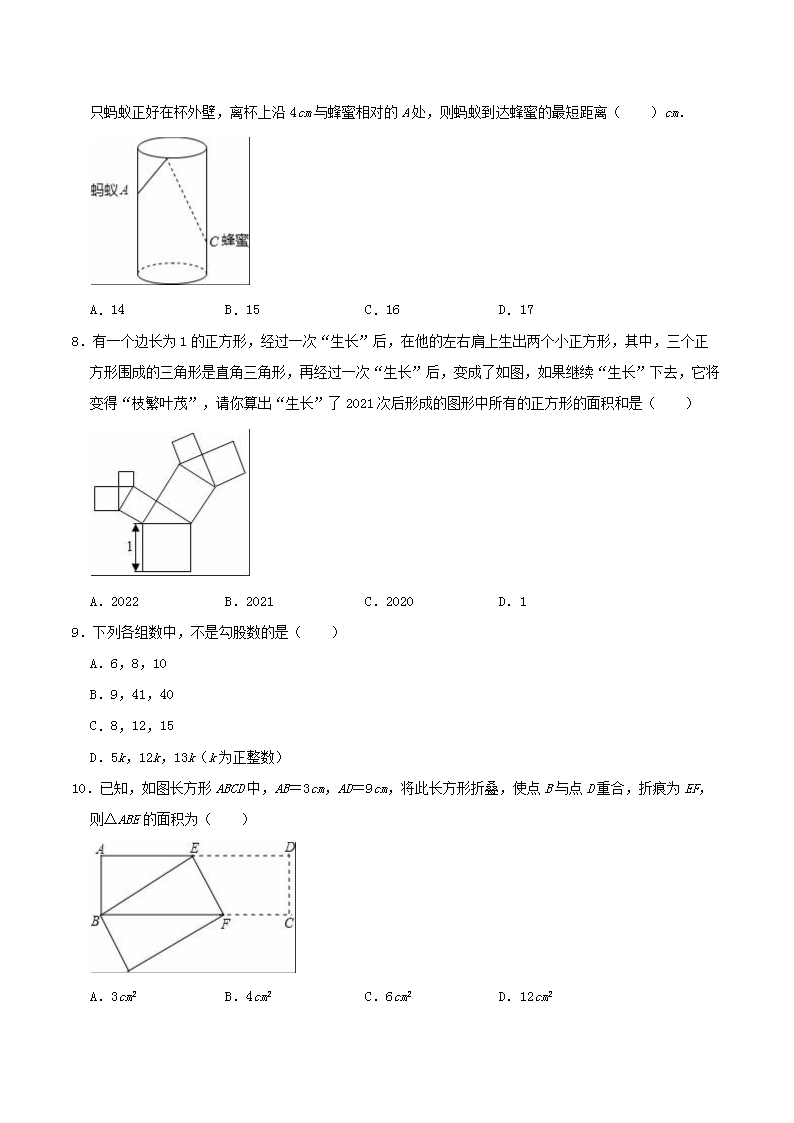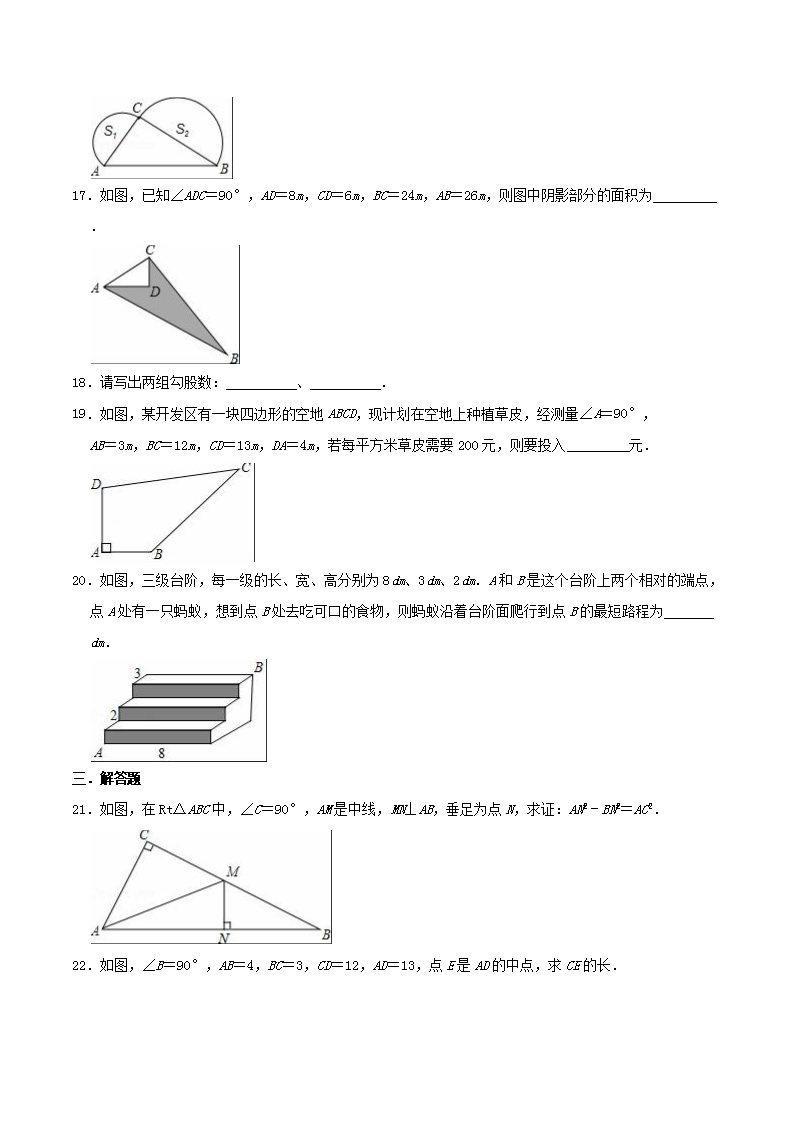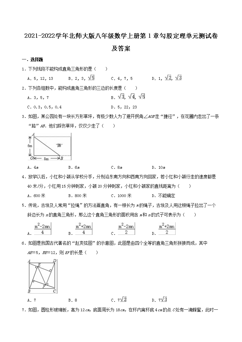 時(shí)間:2024-06-28 17:44:00 來(lái)源:無(wú)憂考網(wǎng) [字體:小 中 大]【文檔名稱】 2021-2022學(xué)年北師大版八年級(jí)數(shù)學(xué)上冊(cè)第1章勾股定理單元測(cè)試卷及答案(Word版).doc