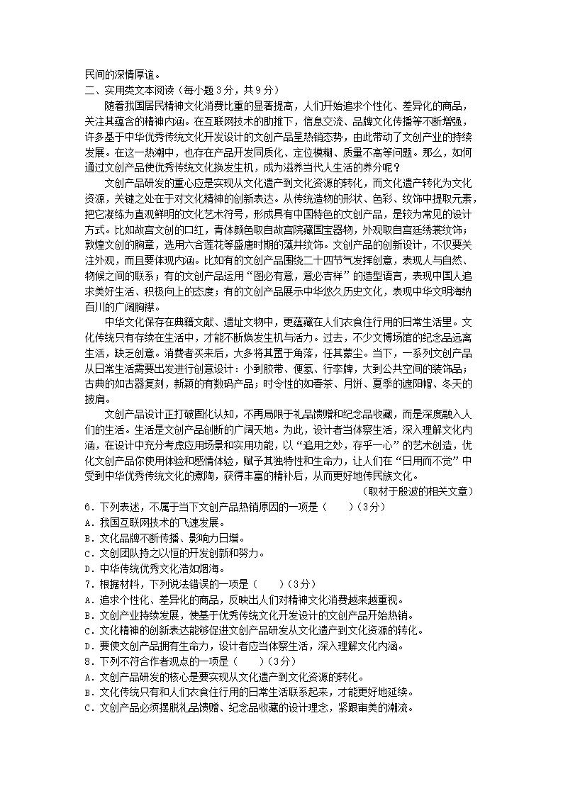 2020-2021年天津市河?xùn)|區(qū)高一語文下學(xué)期期末試卷及答案(Word版)