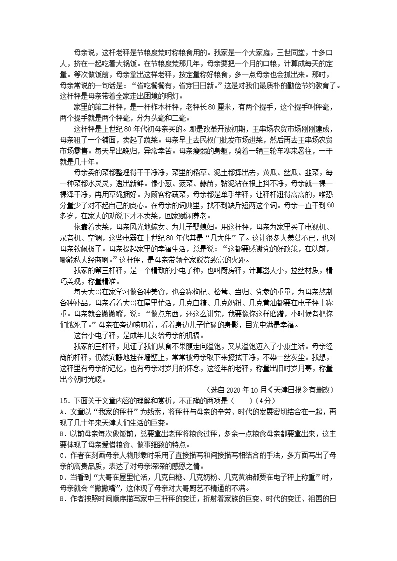 時(shí)間:2024-07-09 16:46:00 來源:無憂考網(wǎng) [字體:小 中 大]【文檔名稱】 2020-2021年天津市河?xùn)|區(qū)高一語文下學(xué)期期末試卷及答案(Word版).doc