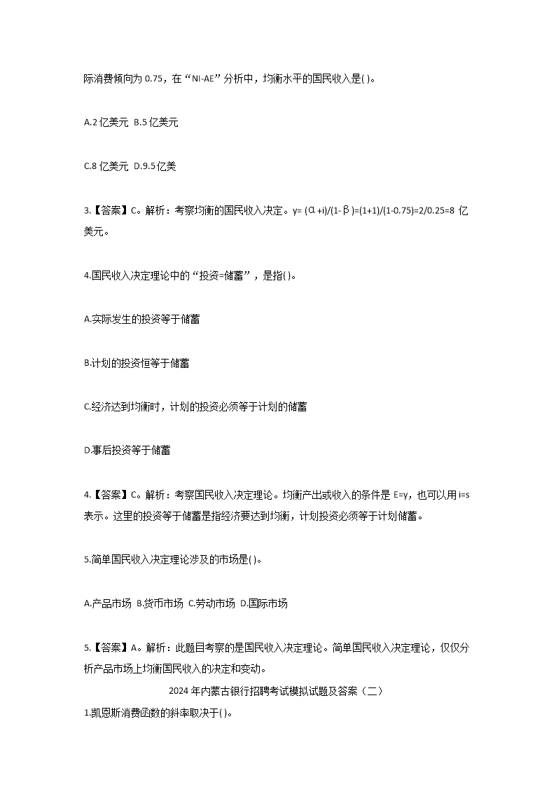 【文檔名稱】 2024年內(nèi)蒙古銀行招聘考試模擬試題及答案(Word版).doc