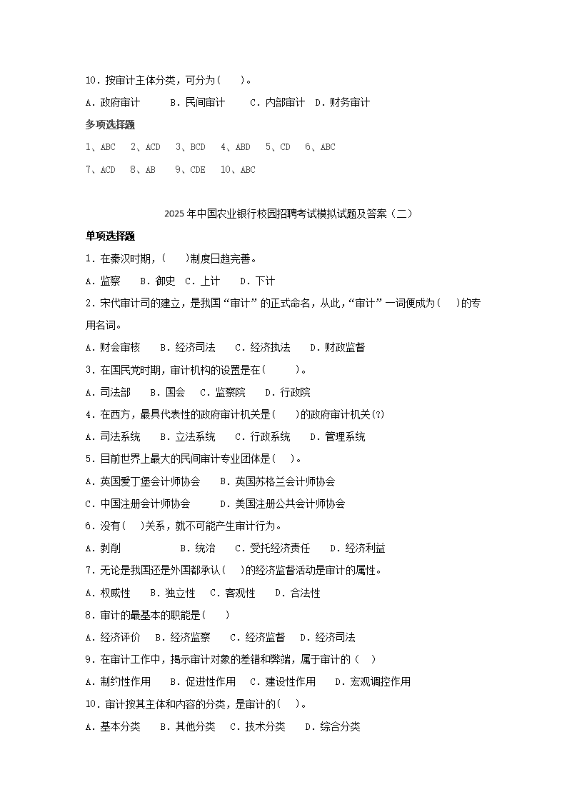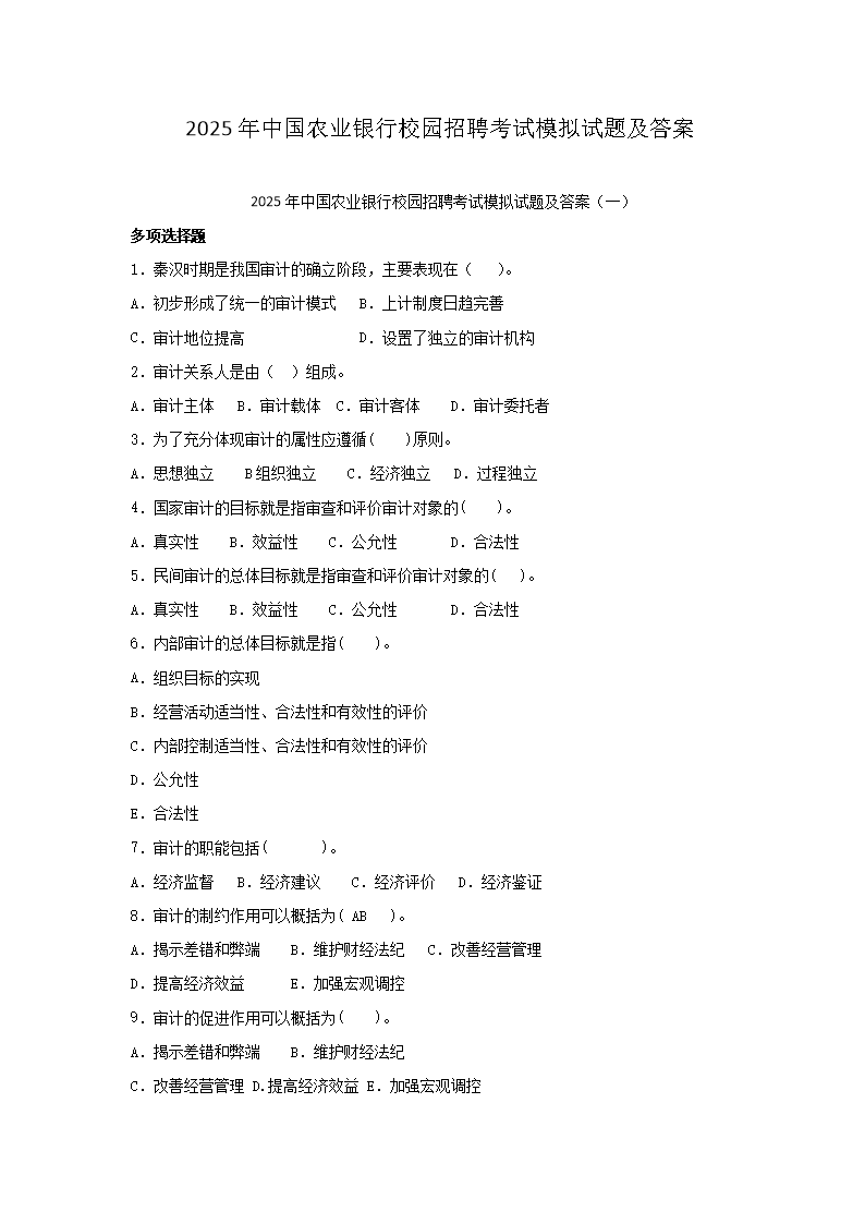 【文檔預(yù)覽】 無憂考網(wǎng)整理發(fā)布2025年中國農(nóng)業(yè)銀行校園招聘考試模擬試題及答案(Word版),前五頁預(yù)覽如下: