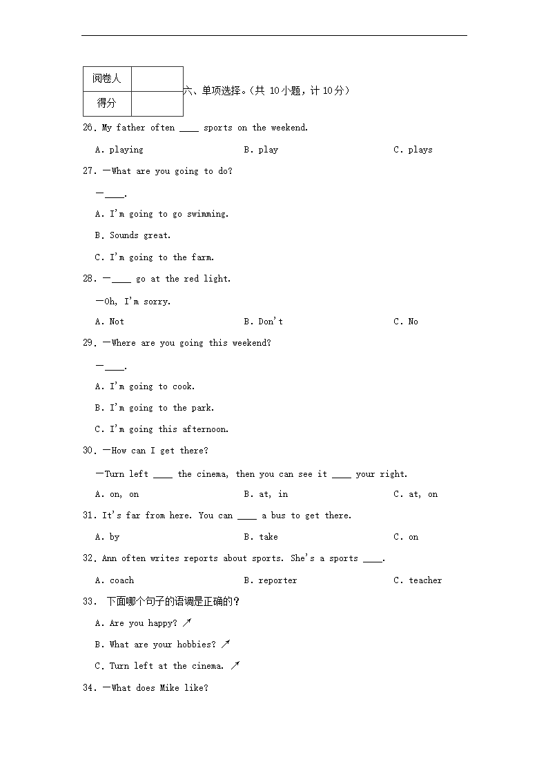 【文檔名稱】 2022-2023年浙江省杭州市錢塘區(qū)六年級上冊英語期中試卷及答案(Word版).doc