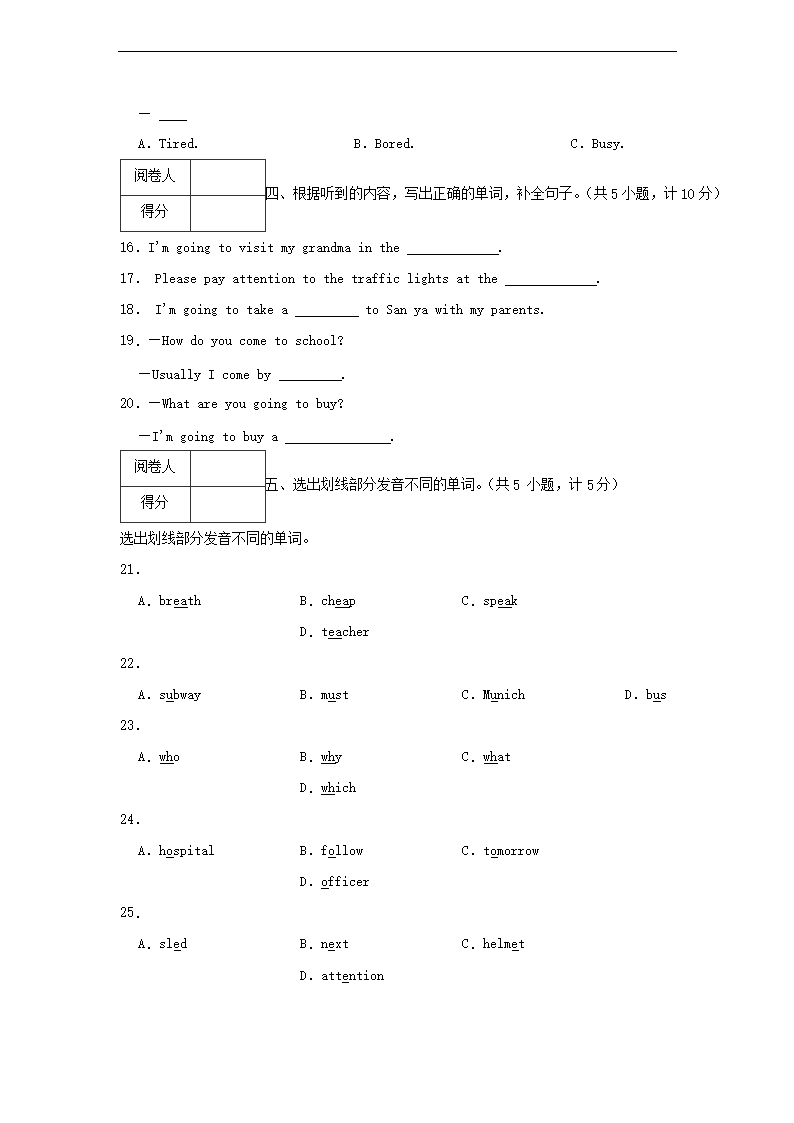 【文檔預覽】 無憂考網整理發(fā)布2022-2023年浙江省杭州市錢塘區(qū)六年級上冊英語期中試卷及答案(Word版),前五頁預覽如下: