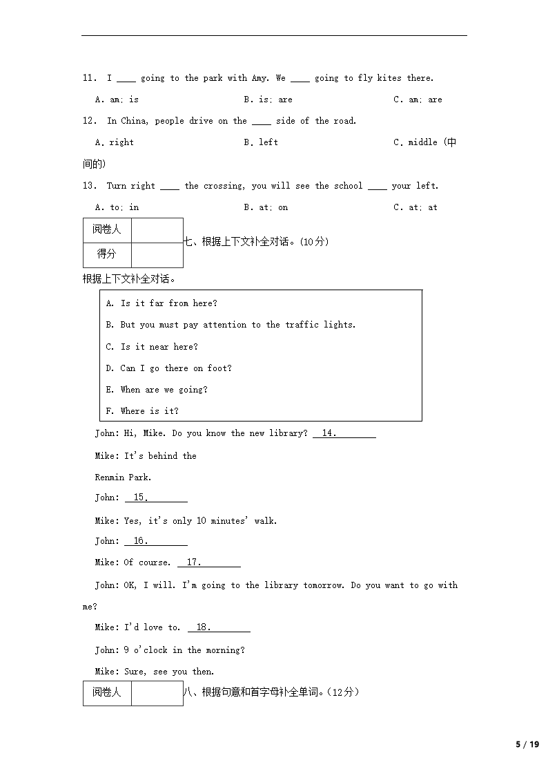 時(shí)間:2024-08-14 17:54:00 來(lái)源:無(wú)憂考網(wǎng) [字體:小 中 大]【文檔名稱】 2023-2024年浙江省杭州市蕭山區(qū)六年級(jí)上冊(cè)英語(yǔ)期中試卷及答案(Word版).doc
