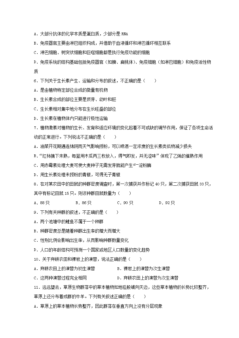 2021-2022學(xué)年江蘇蘇州市高二上學(xué)期期中考試生物試題及答案(Word版)