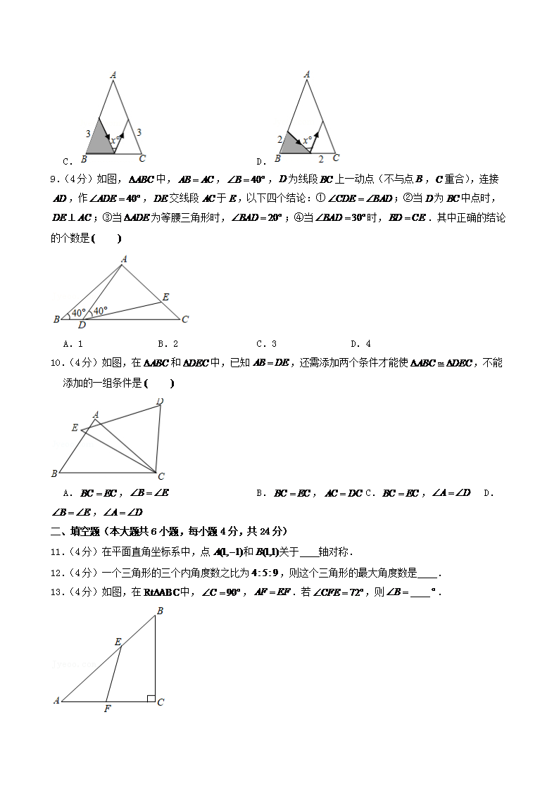 時(shí)間:2024-09-02 17:05:00 來(lái)源:無(wú)憂考網(wǎng) [字體:小 中 大]【文檔名稱】 2021-2022學(xué)年福建省龍巖市長(zhǎng)汀縣八年級(jí)上學(xué)期期中數(shù)學(xué)試題及答案(Word版).doc