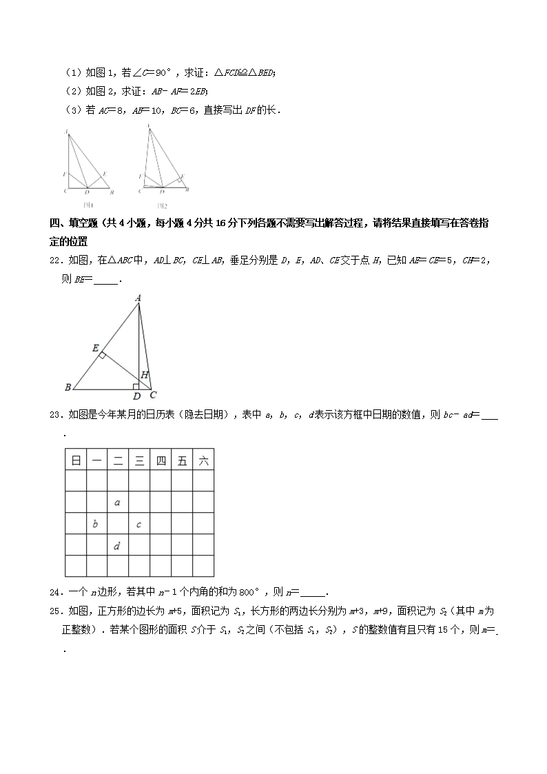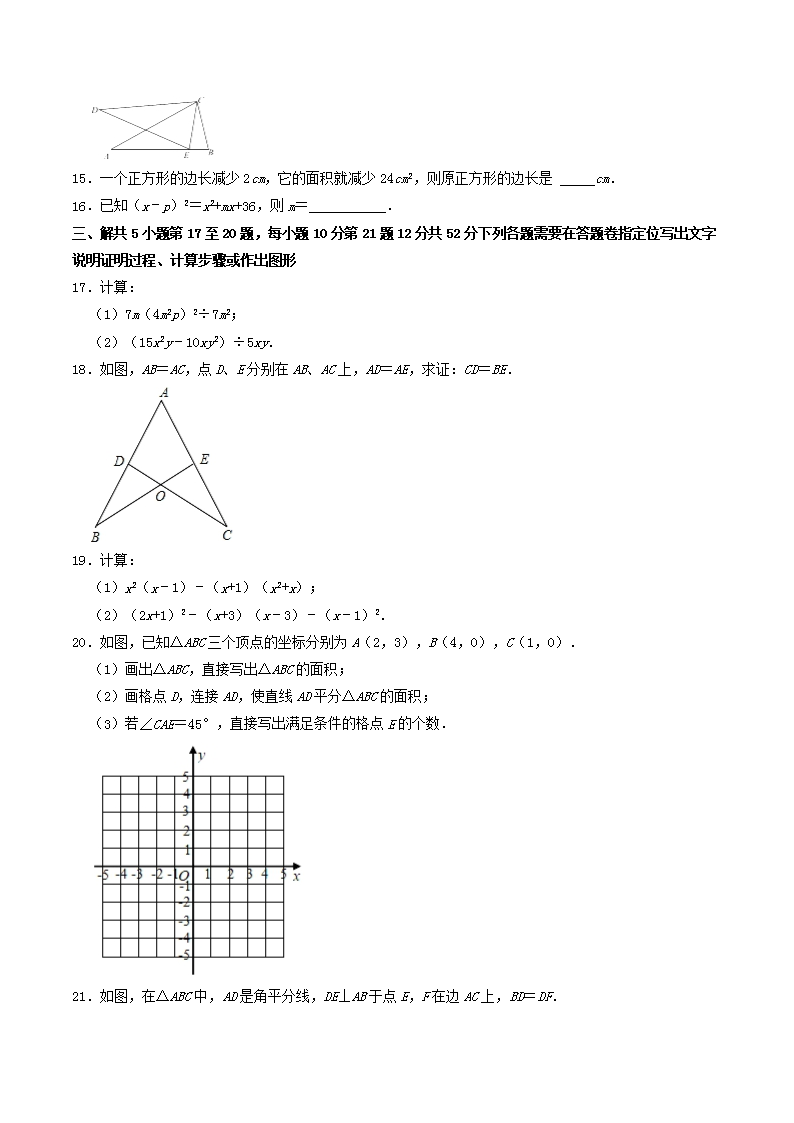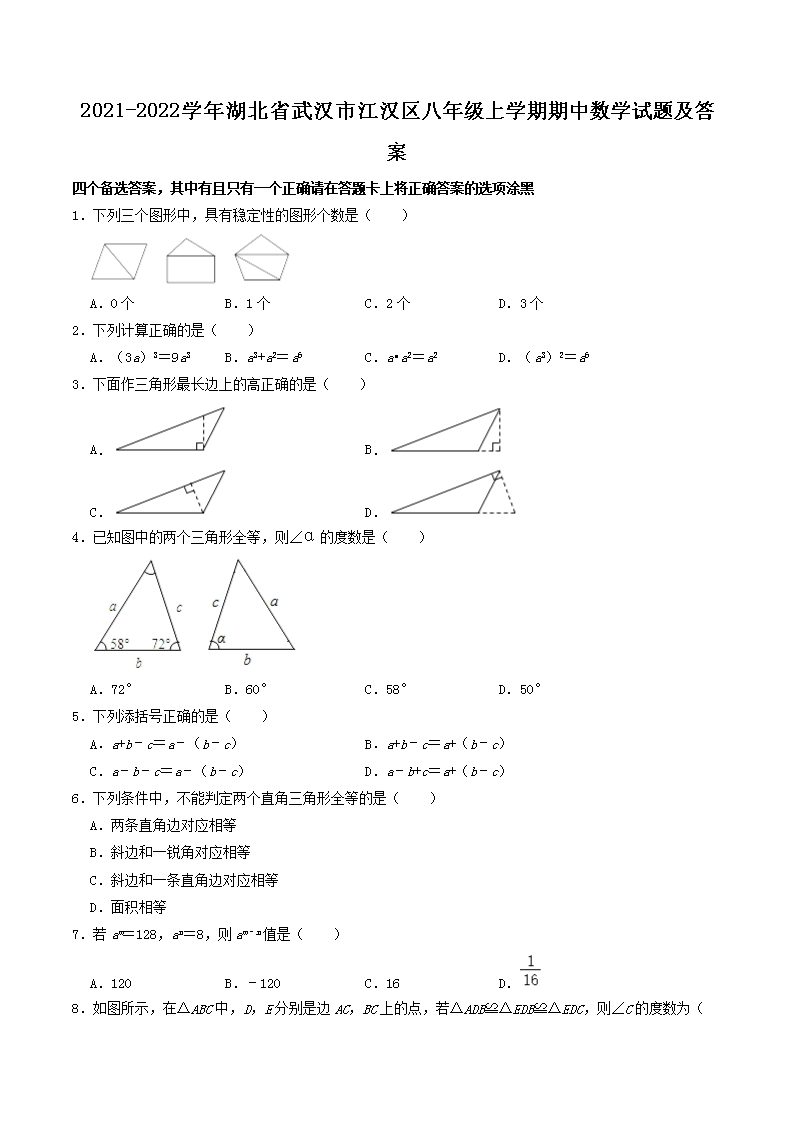2021-2022學(xué)年湖北省武漢市江漢區(qū)八年級上學(xué)期期中數(shù)學(xué)試題及答案(Word版)