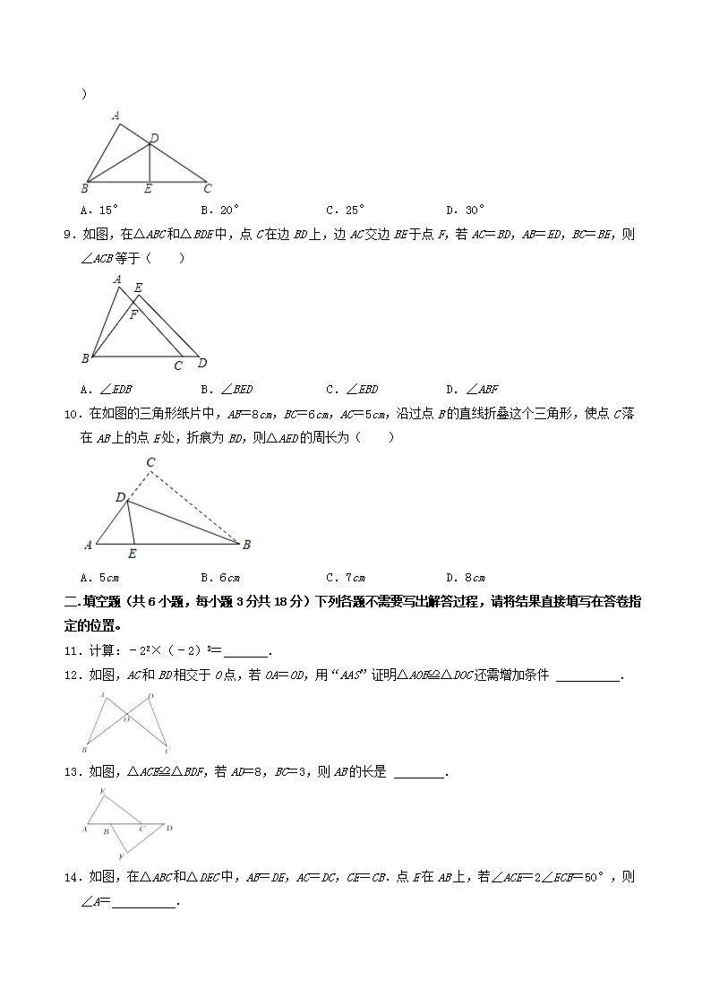 時間:2024-09-09 17:14:00 來源:無憂考網(wǎng) [字體:小 中 大]【文檔名稱】 2021-2022學(xué)年湖北省武漢市江漢區(qū)八年級上學(xué)期期中數(shù)學(xué)試題及答案(Word版).doc