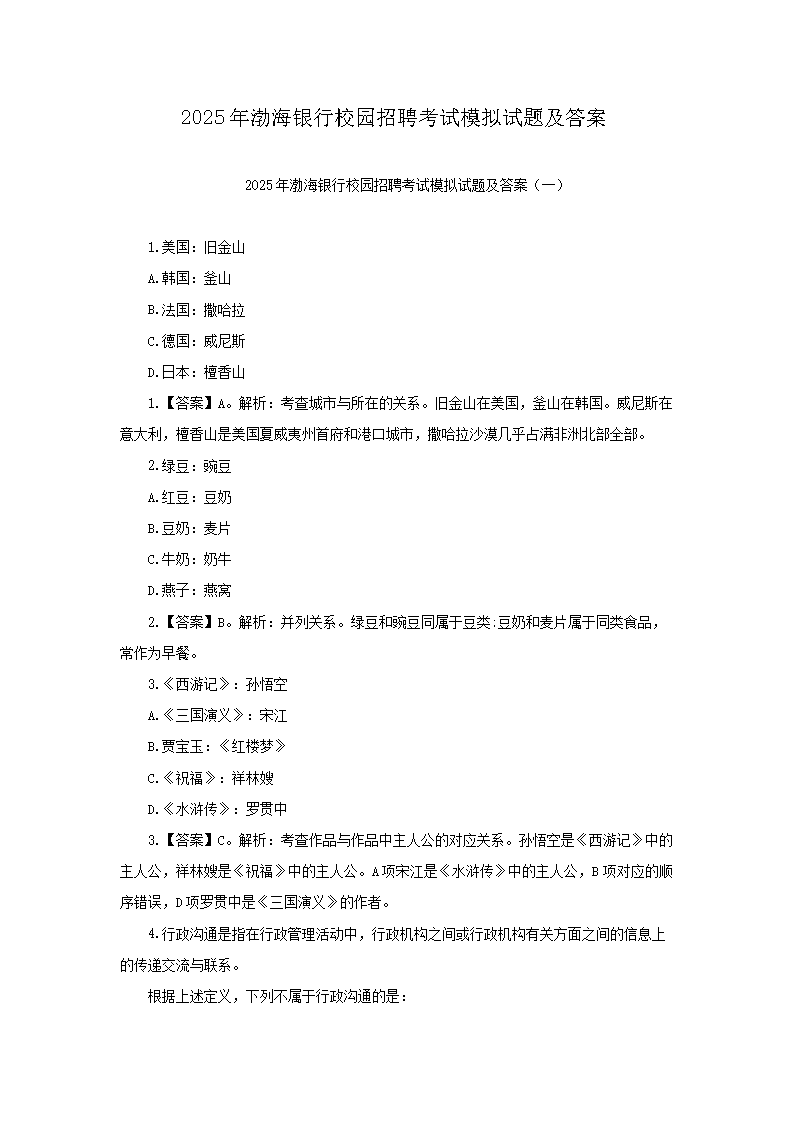 【文檔預(yù)覽】 無憂考網(wǎng)整理發(fā)布2025年渤海銀行校園招聘考試模擬試題及答案(Word版),前五頁預(yù)覽如下: