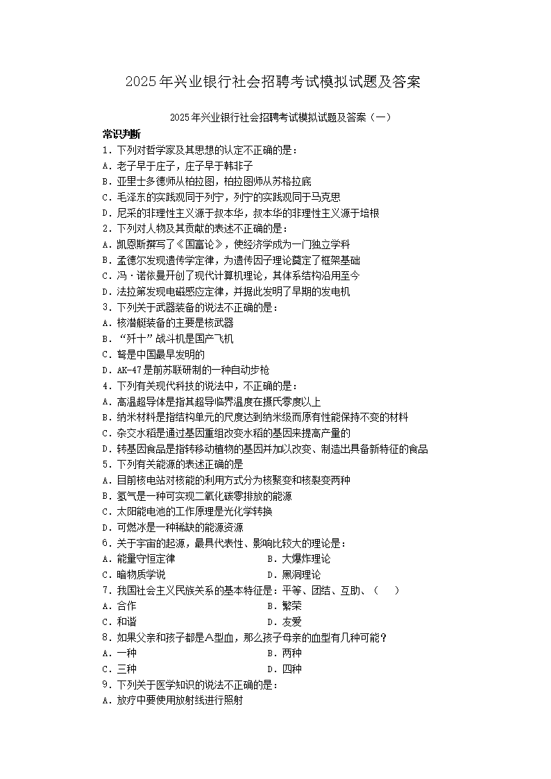 【文檔預(yù)覽】 無(wú)憂考網(wǎng)整理發(fā)布2025年興業(yè)銀行社會(huì)招聘考試模擬試題及答案(Word版),前五頁(yè)預(yù)覽如下: