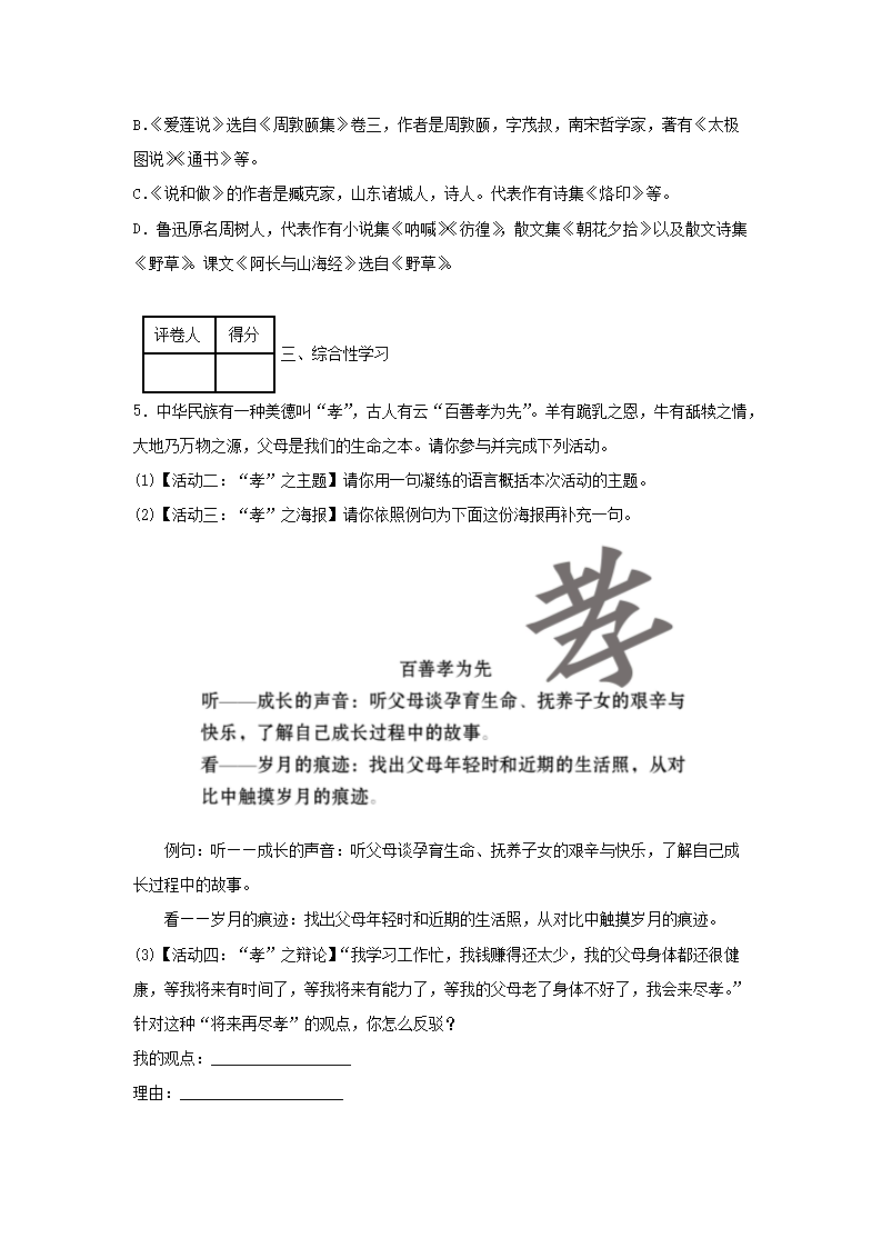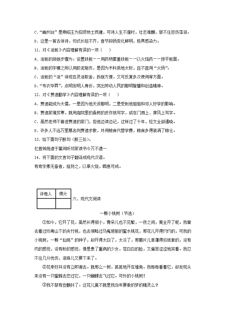 2022-2023學(xué)年七年級(jí)下冊(cè)語(yǔ)文第五單元試卷及答案部編版(Word版)