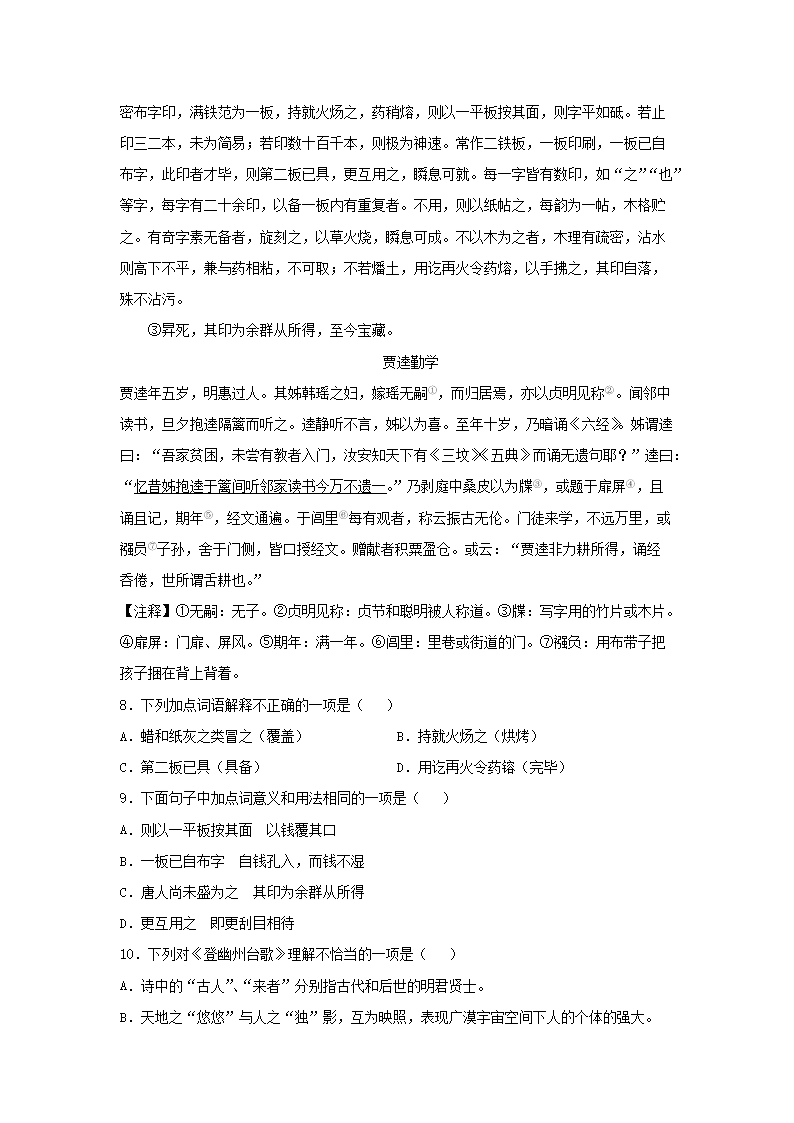 - 2021-2022學(xué)年重慶渝北區(qū)七年級(jí)下冊(cè)語(yǔ)文期中試卷及答案