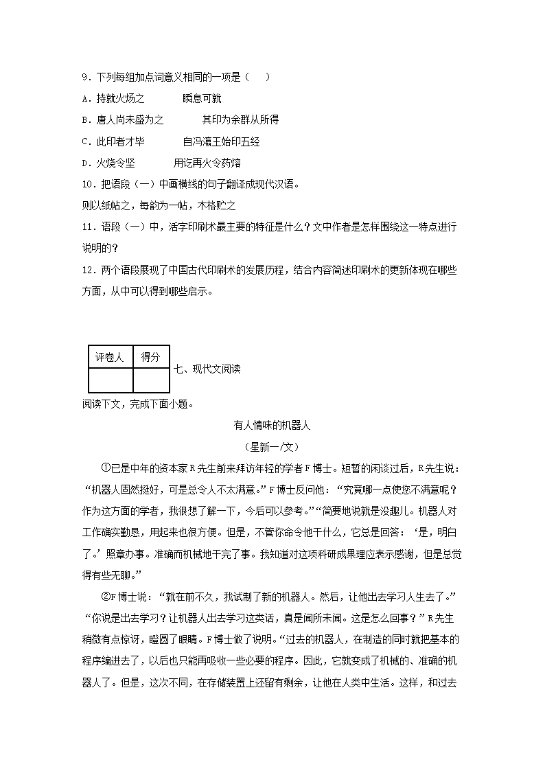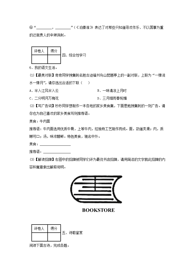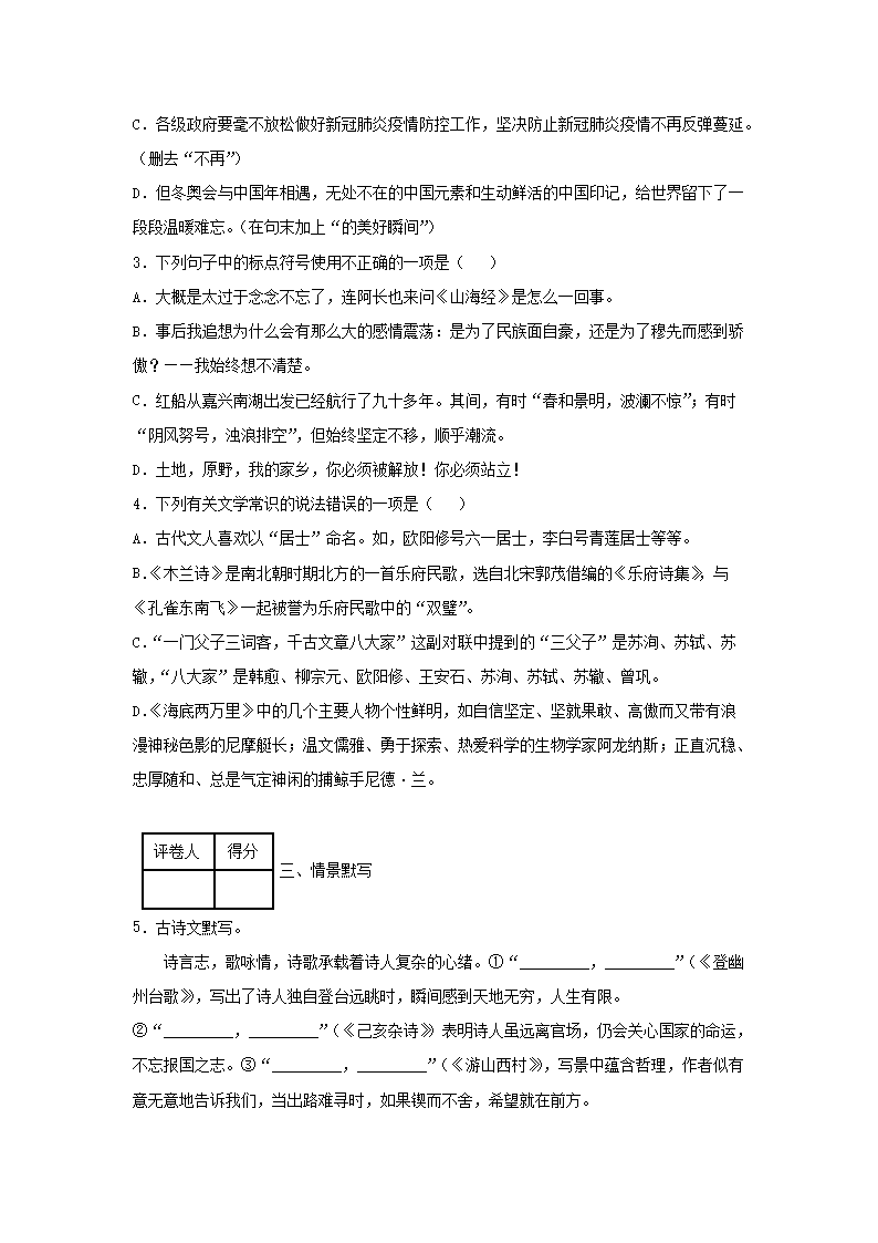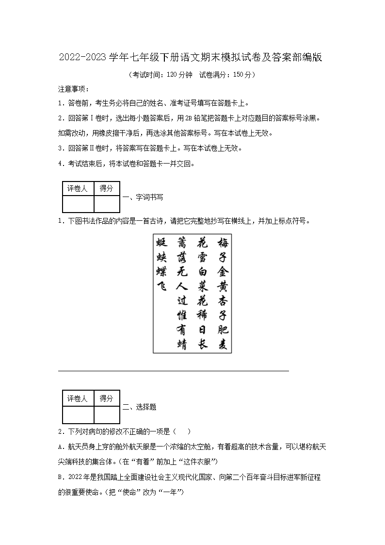 【文檔名稱】 2022-2023學年七年級下冊語文期末模擬試卷及答案部編版(Word版).doc