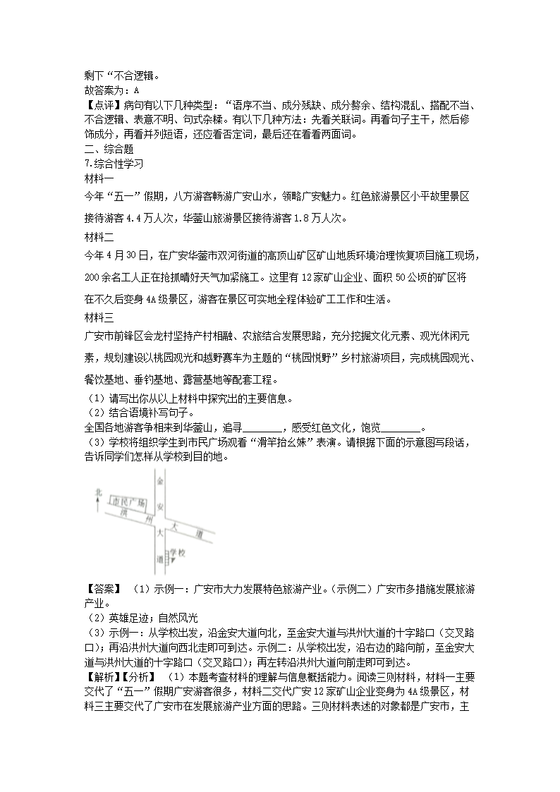 - 2021-2022學年重慶沙坪壩區(qū)七年級下冊語文第一次月考試卷及答案