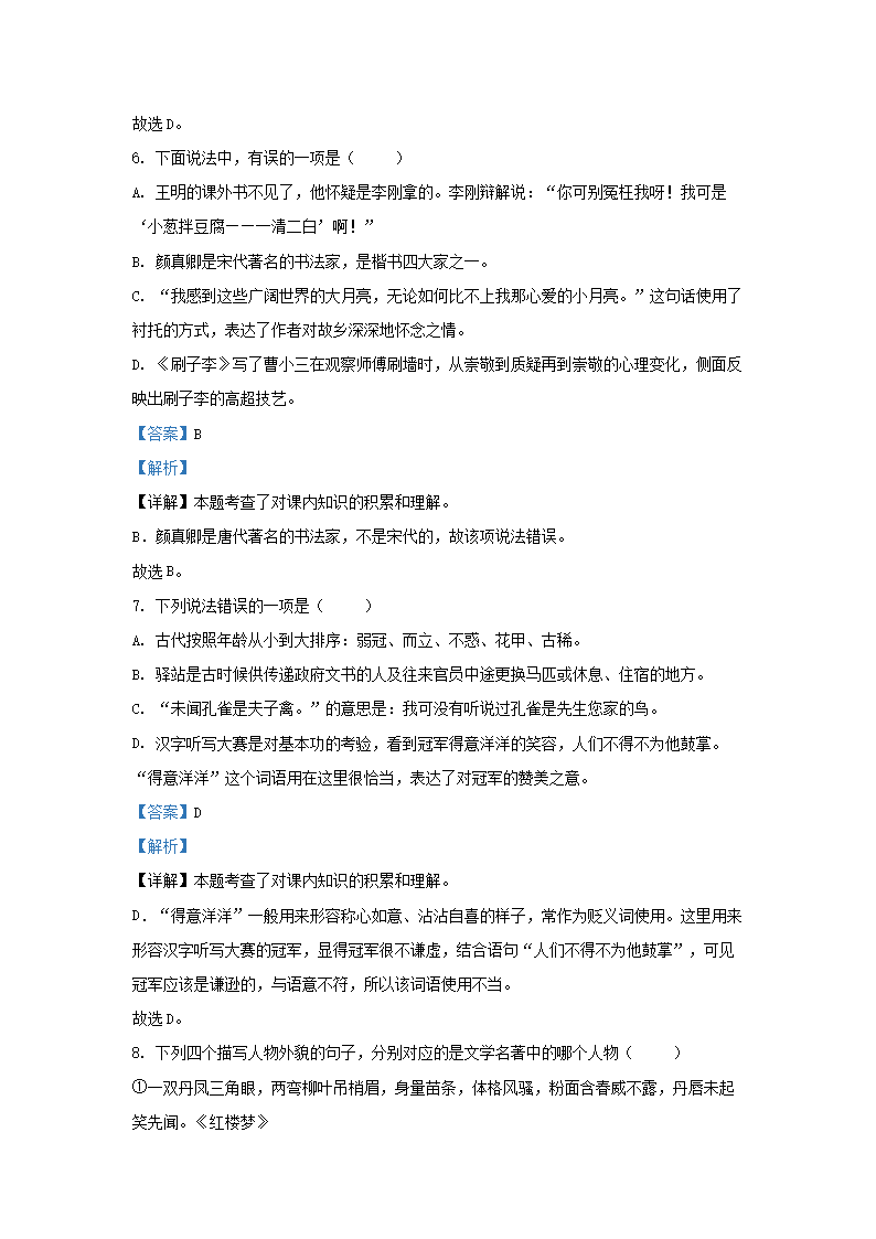 - 2023-2024學(xué)年江蘇鹽城鹽都區(qū)五年級下冊語文期中試卷及答案