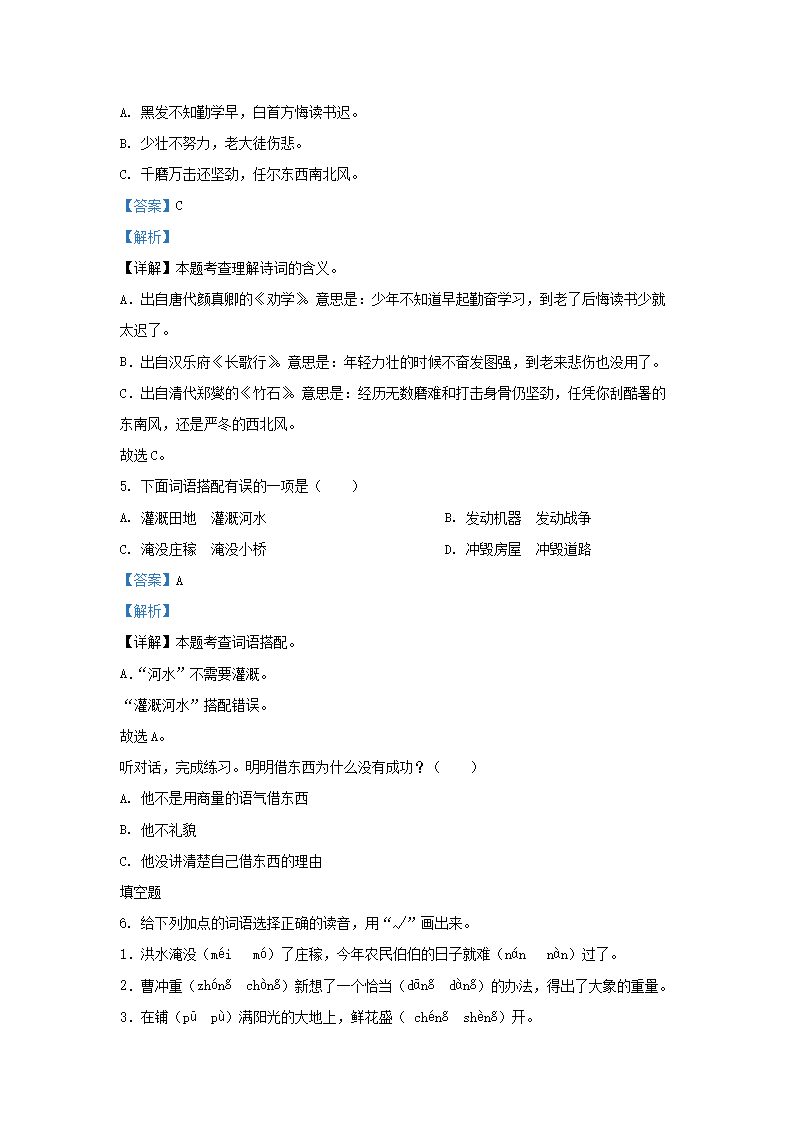- 2020-2021學(xué)年天津市部分區(qū)小學(xué)二年級下冊語文期末試題及答案