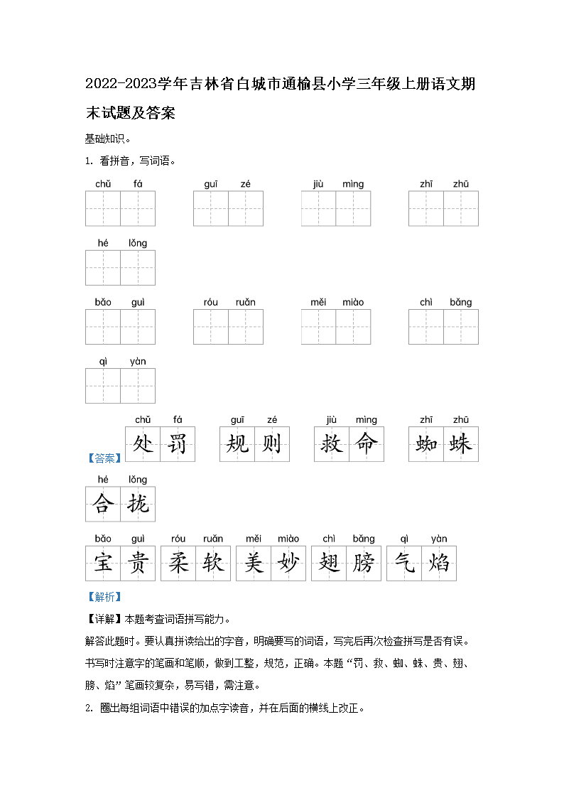 【文檔預(yù)覽】 無憂考網(wǎng)整理發(fā)布2022-2023學(xué)年吉林省白城市通榆縣小學(xué)三年級(jí)上冊(cè)語文期末試題及答案(Word版),前五頁預(yù)覽如下: