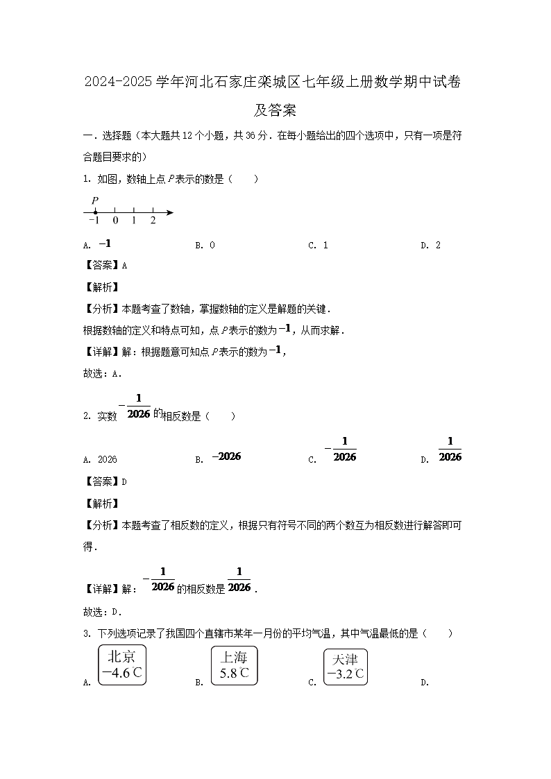 【文檔預(yù)覽】 無(wú)憂(yōu)考網(wǎng)整理發(fā)布2024-2025學(xué)年河北石家莊欒城區(qū)七年級(jí)上冊(cè)數(shù)學(xué)期中試卷及答案(Word版),前五頁(yè)預(yù)覽如下: