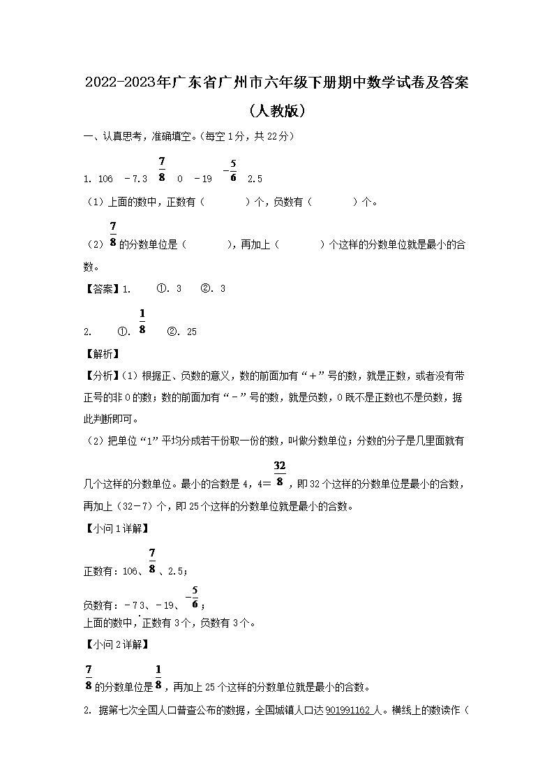 2022-2023年廣東省廣州市六年級下冊期中數(shù)學(xué)試卷及答案(人教版)(Word版)
