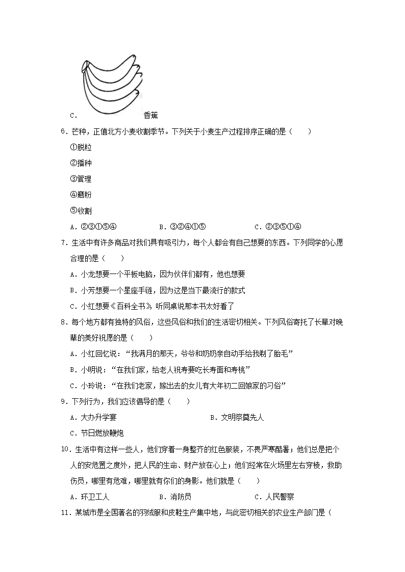 2022-2023學(xué)年山東省青島市平度市四年級下學(xué)期期末道德與法治真題及答案(Word版)