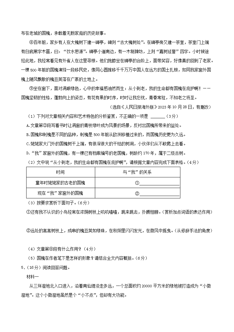 時間:2025-02-19 17:07:00 來源:無憂考網(wǎng) [字體:小 中 大]【文檔名稱】 2023-2024學(xué)年安徽省阜陽市太和縣八年級上學(xué)期期末語文試題及答案(Word版).doc