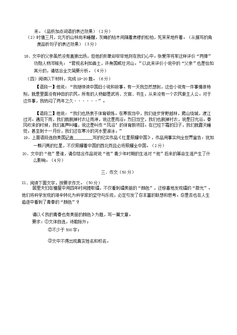 - 2023-2024學(xué)年江西省景德鎮(zhèn)市八年級上學(xué)期期末語文試題及答案
